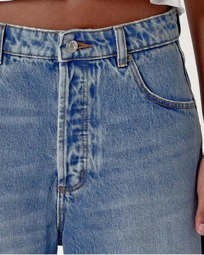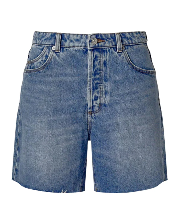 Embrace a timeless look with the Rollas 90s Relaxed Short in Lennon Vintage. Crafted from pure cotton denim, these high-rise shorts offer a comfortable, classic fit. They feature a button and zip fly, with both front and back pockets for practicality. The raw hem adds a touch of casual, vintage-inspired style to complete your look.