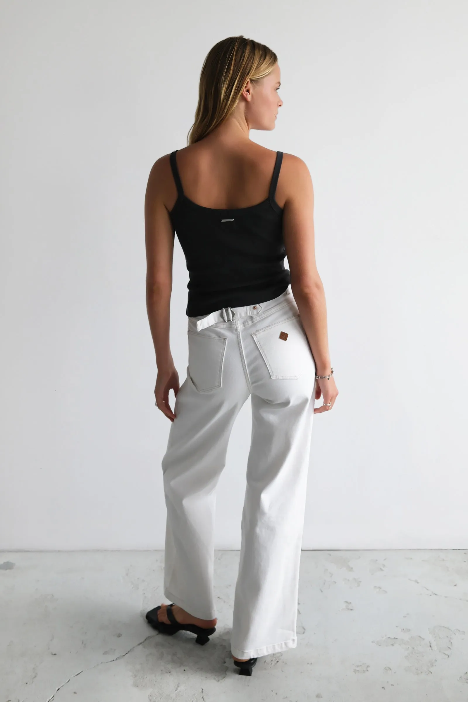 - A subtle cinch detail at the back waist adds shape and adjustability, keeping the fit flattering while still relaxed through the leg.