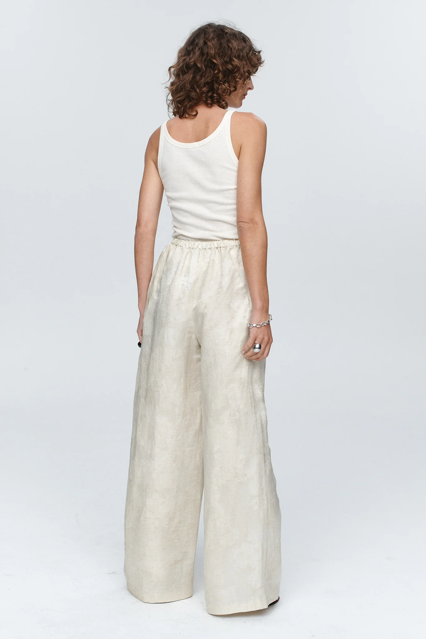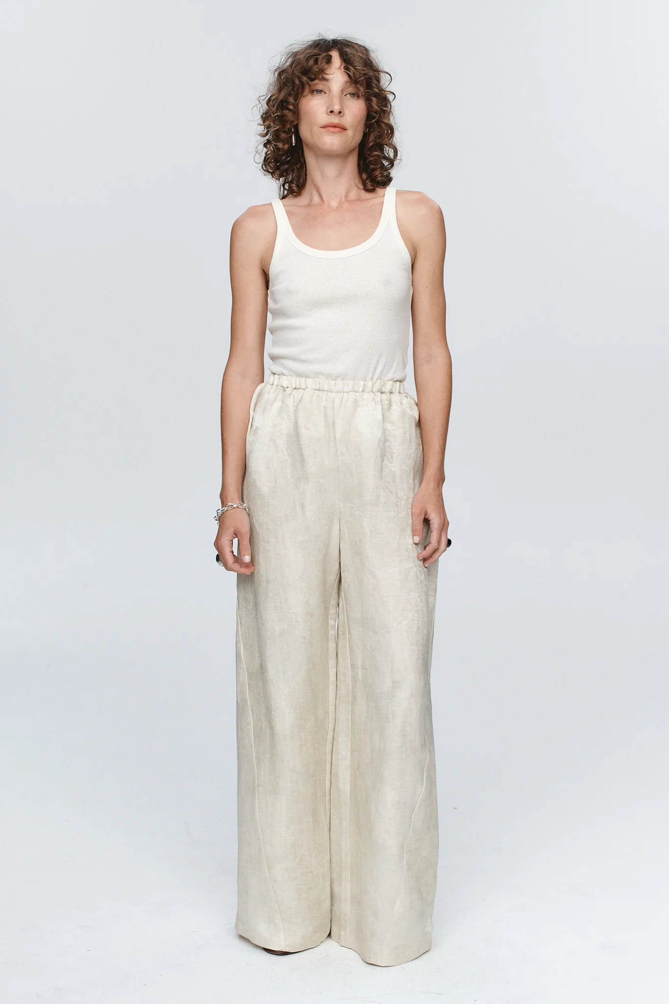 The Alicia Pant is a refined essential designed with ease and movement in mind. Reimagined in a softly textured linen/cotton/silk blend in a soft moss hue. It features a wide-leg on a comfortable elasticated waistband for effortless wear. Minimal in detail, yet elevated in cut and fabric, this piece offers quiet versatility.