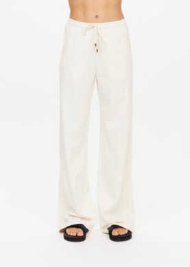 ‘- Wide leg pant with a slight flare in soft knitted jacquard fabrication