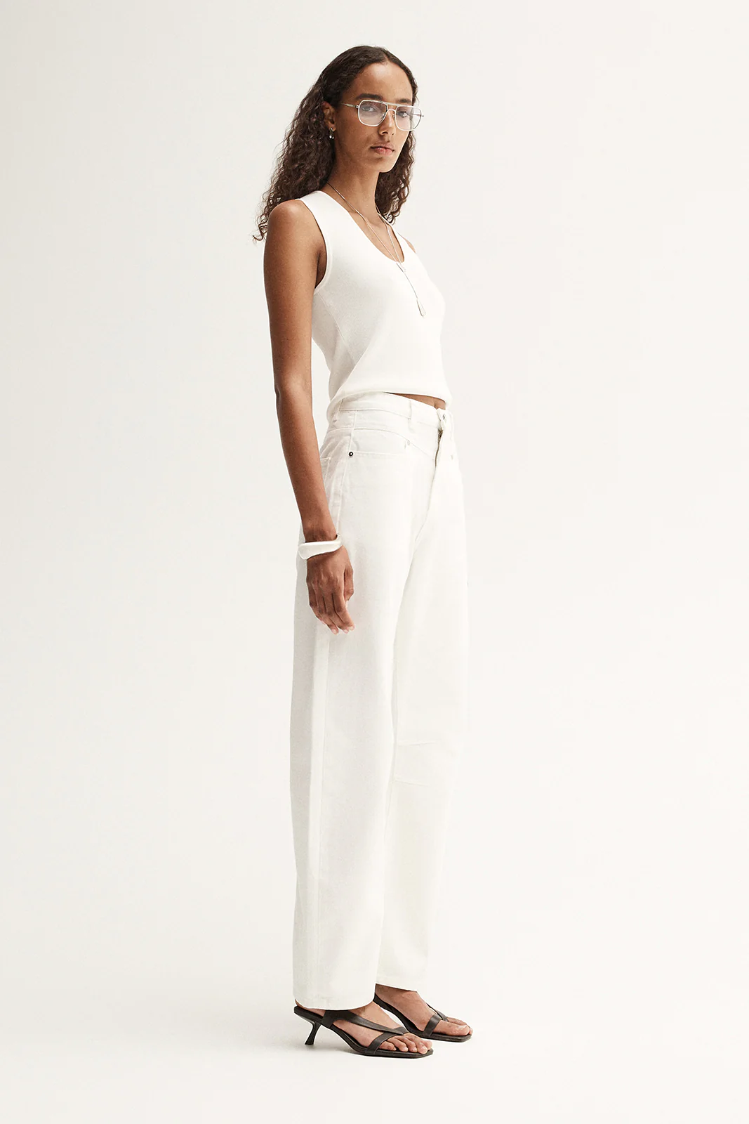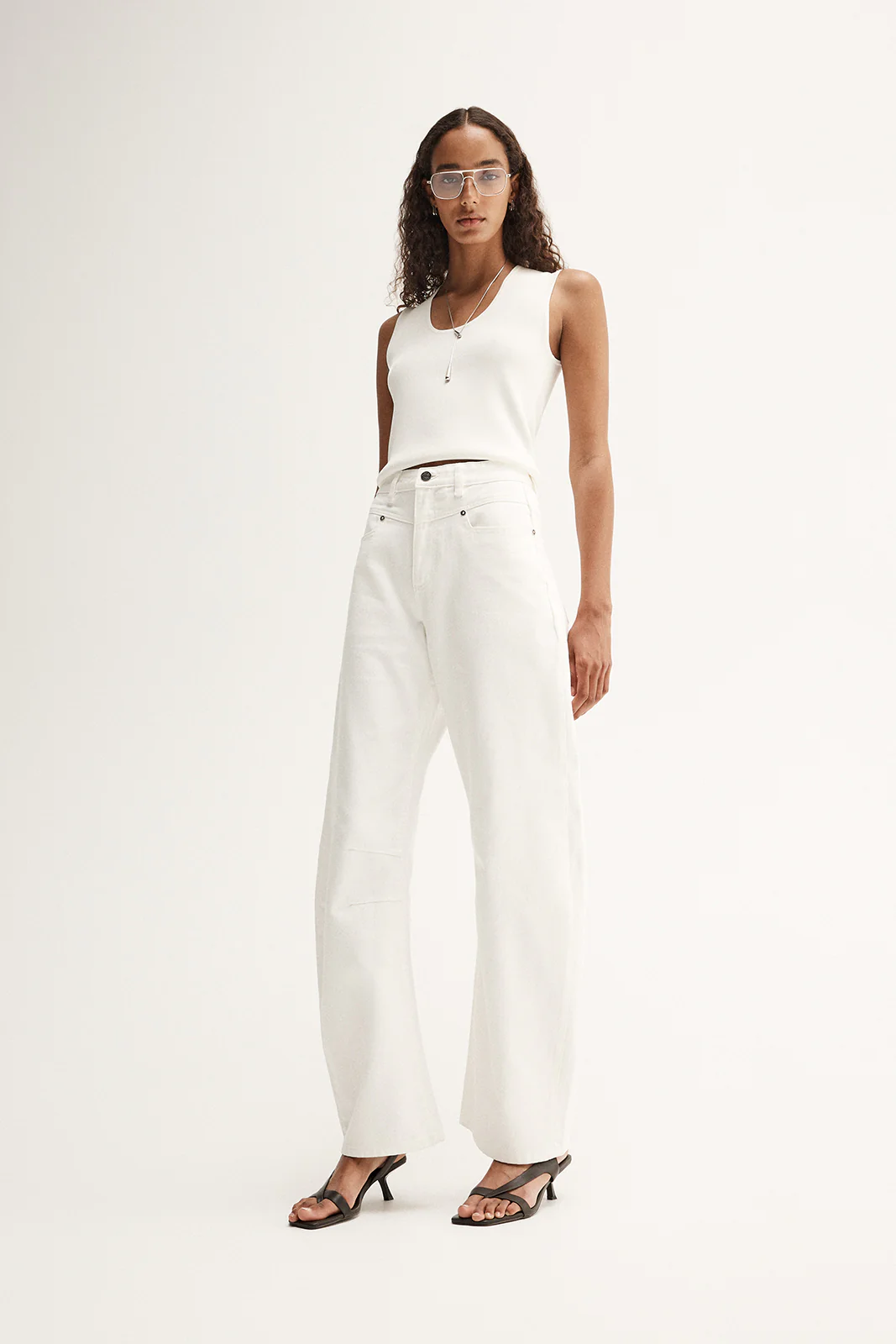 Made of a rigid, low-stretch denim, the Chelsea Jean has a barrel leg silhouette. Cut to a mid-rise, these jeans pair effortlessly with pared back basics and statement pieces for day to night outfitting in any season.