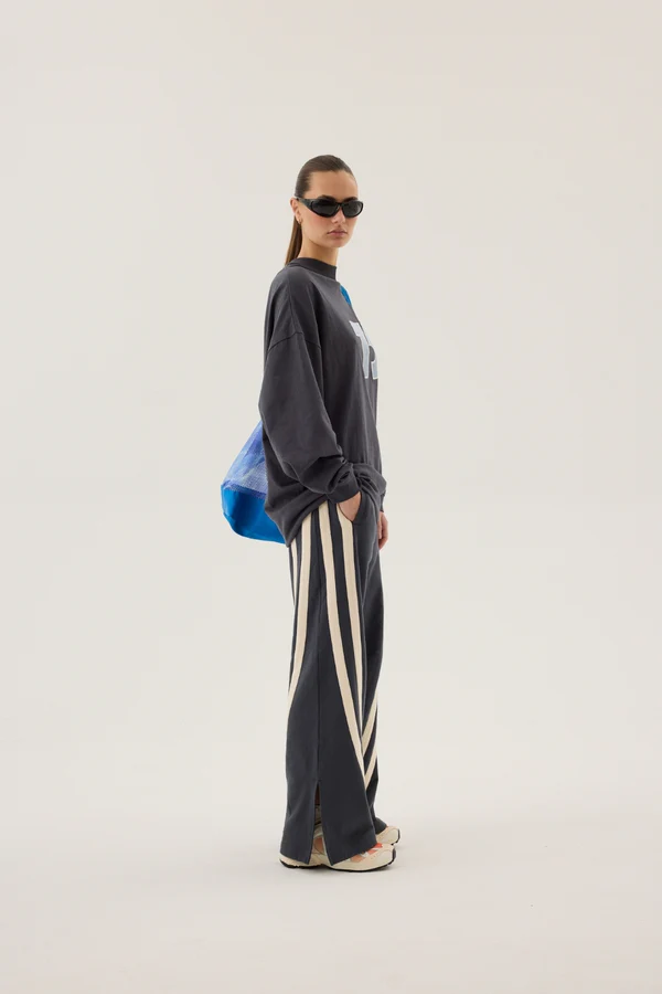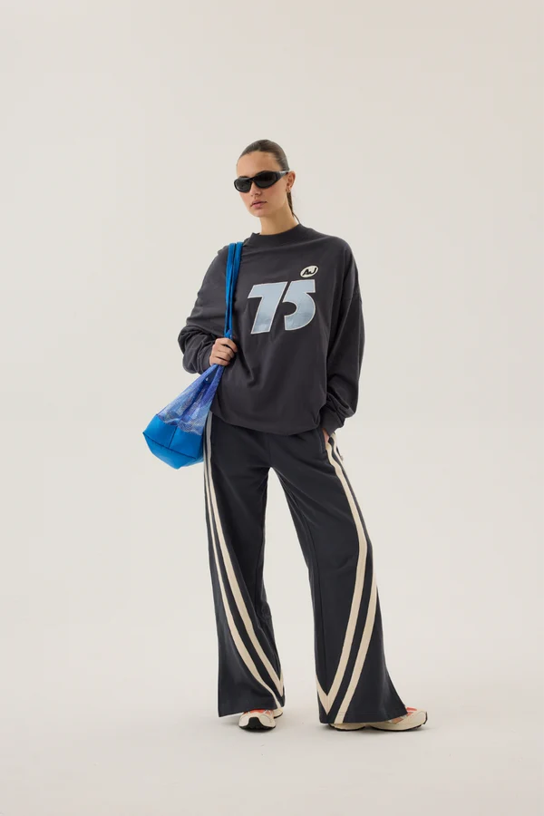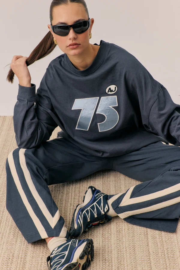 Your new must-have essential, the Daytona Long Sleeve Top in Washed Black is made from 100% premium and luxurious soft cotton. Featuring a relaxed and comfortable drop-shoulder, premium satin appliqué on the front and rib cuffs at sleeve. Designed in a classic shape for everyday style, this top is perfect for a relaxed sporty look.