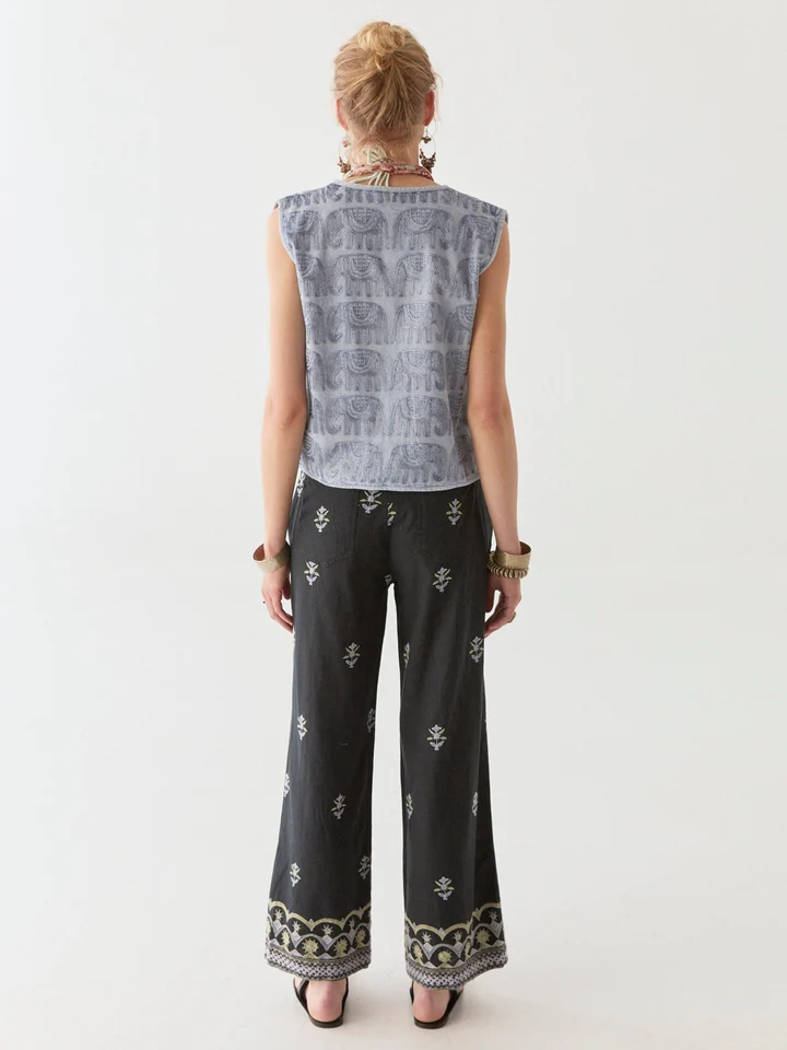 What about the hand-blocked elephant motif? Pure character. A nod to old-world craftsmanship with just the right dose of badassery. Open cut, raw edges, and lightweight cotton make it an effortless throw-on, whether you’re layering it up or wearing it solo.