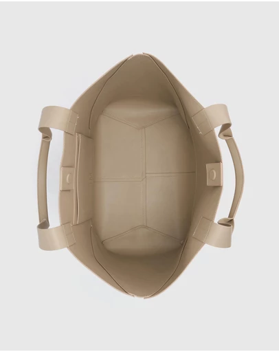 CAMILLA AND MARC Ezra geometric panelled tote in chalk. Embossed monogram logo, hidden magnetic snap closure.