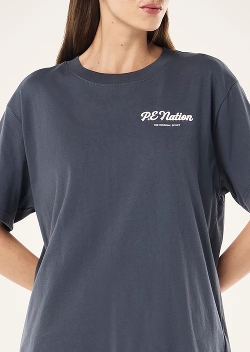 The Formation Tee 2.0 in Marine Blue is made from a lush 100% heavyweight cotton jersey, this tee features an relaxed silhouette and a P.E Nation seasonal graphic print on front and back.