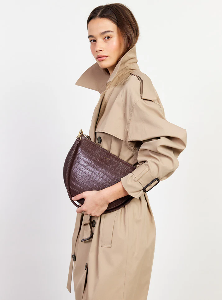 The classic shoulder bag, reimagined in rich croc embossed leather. Gani’s softly curved shape showcases the textured croc finish beautifully, moving seamlessly from day to evening. The detachable rolled shoulder handle offers versatile styling, while the gold box chain zip pull adds a refined edge. Bold, elegant, and wrapped in luxurious croc texture — Gani is your new statement essential.