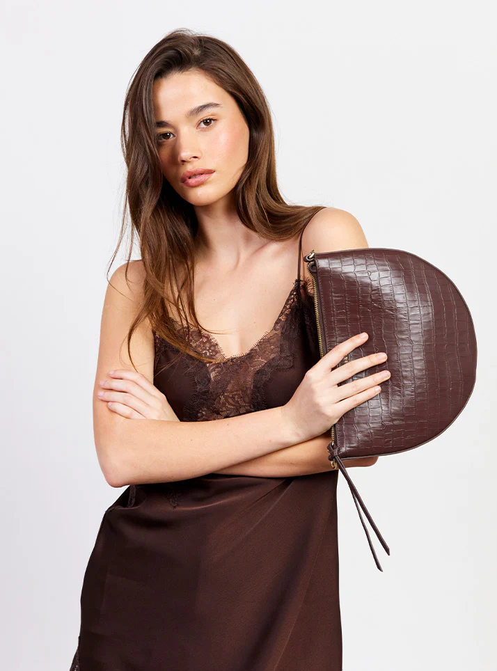 Gani Shoulder Bag | Espresso Croc