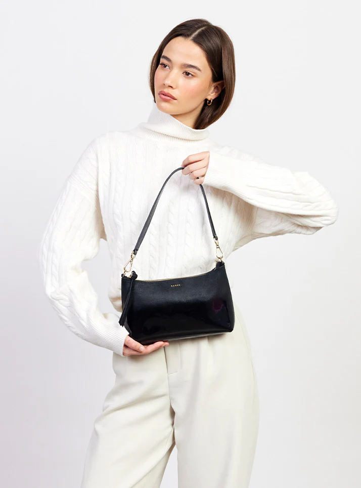 Your perfect plus-one for dinner dates and weekend brunches. Elevated in the distinctive dipped leather finish, Haven is the compact shoulder bag that proves you don’t need to carry everything to carry everything that matters. The unique dipped leather showcases a stunning ombré effect — soft suede gradually transitioning into a glossy, patent-like finish that catches the light beautifully. She is perfectly sized to fit your phone, wallet, and a few small essentials without the bulk. The slim silhouette sits comfortably under your arm, keeping you hands-free and effortlessly chic whether you’re out for cocktails or catching up with friends. Switch between the shoulder strap for an elegant look or the crossbody strap for easy, hands-free wear. Inside, you’ll find an internal zip pocket for cards or cash, plus a keep-safe key clip so you’re never hunting for your keys at the bottom of your bag. Compact. Elegant. Wrapped in luxurious gradient leather. Ready for wherever the night takes you.