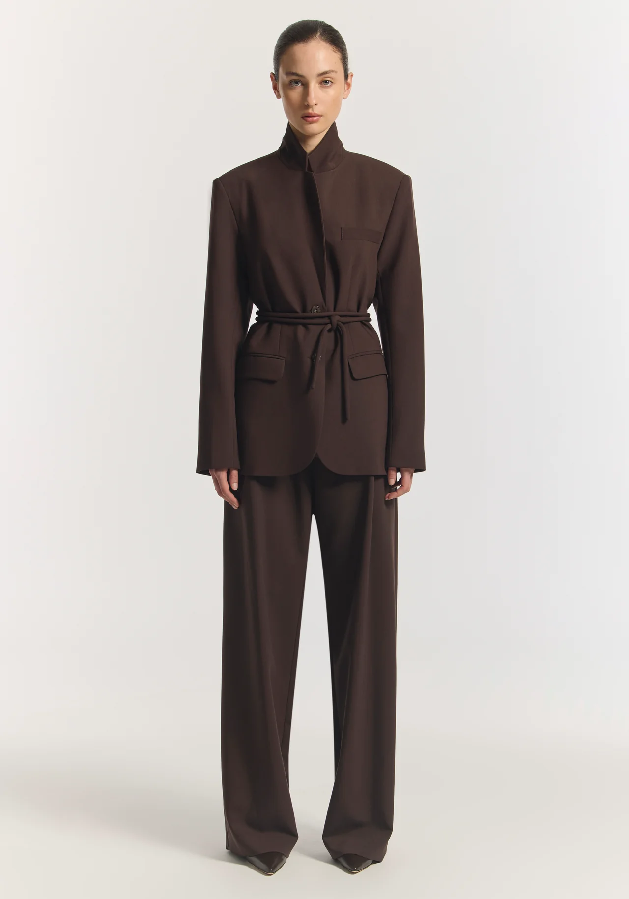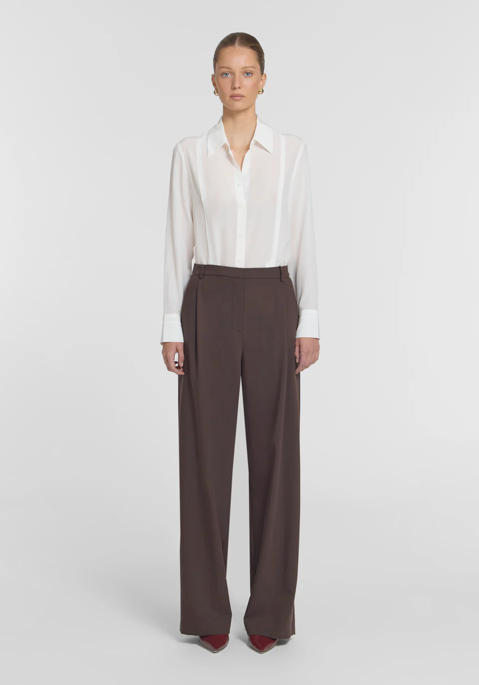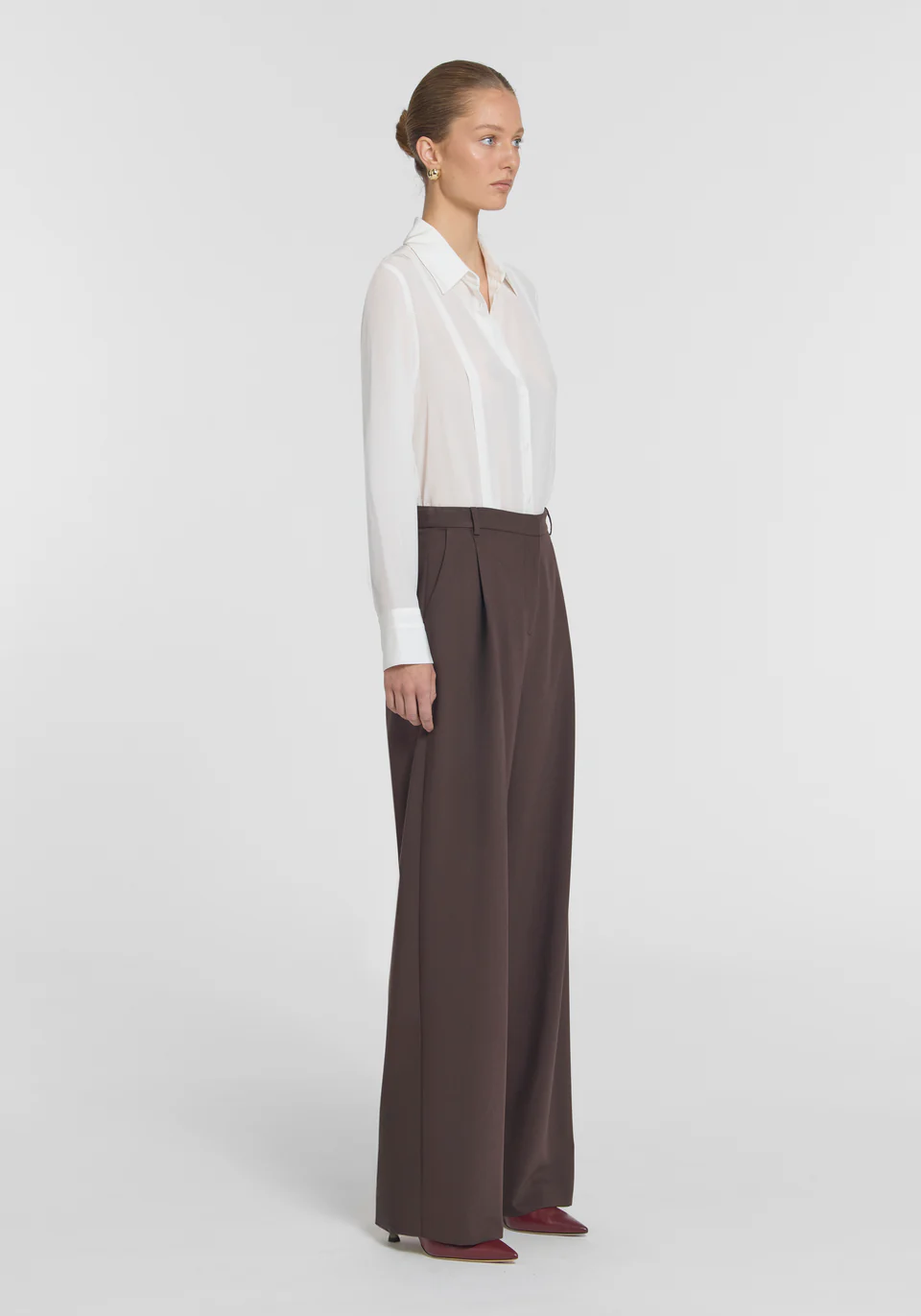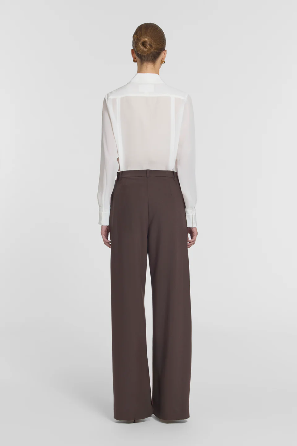 An elevated classic, the Idol Pant is realised in timeless chocolate. Falling to a full-length, wide-leg silhouette with front tucks, it serves as a versatile year-round foundation.