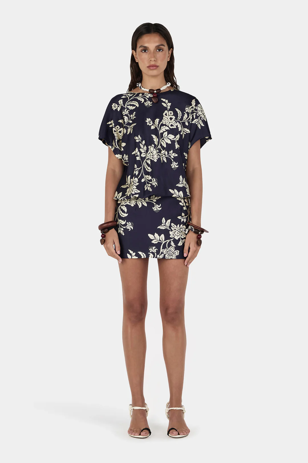 The Kodie Dress by Hansen & Gretel is a mini-length dress featuring a high neckline and an open back with adjustable ties for a custom fit. Designed with a relaxed, softly draped bodice and a fitted mini skirt, it creates a flattering contrast in shape.
