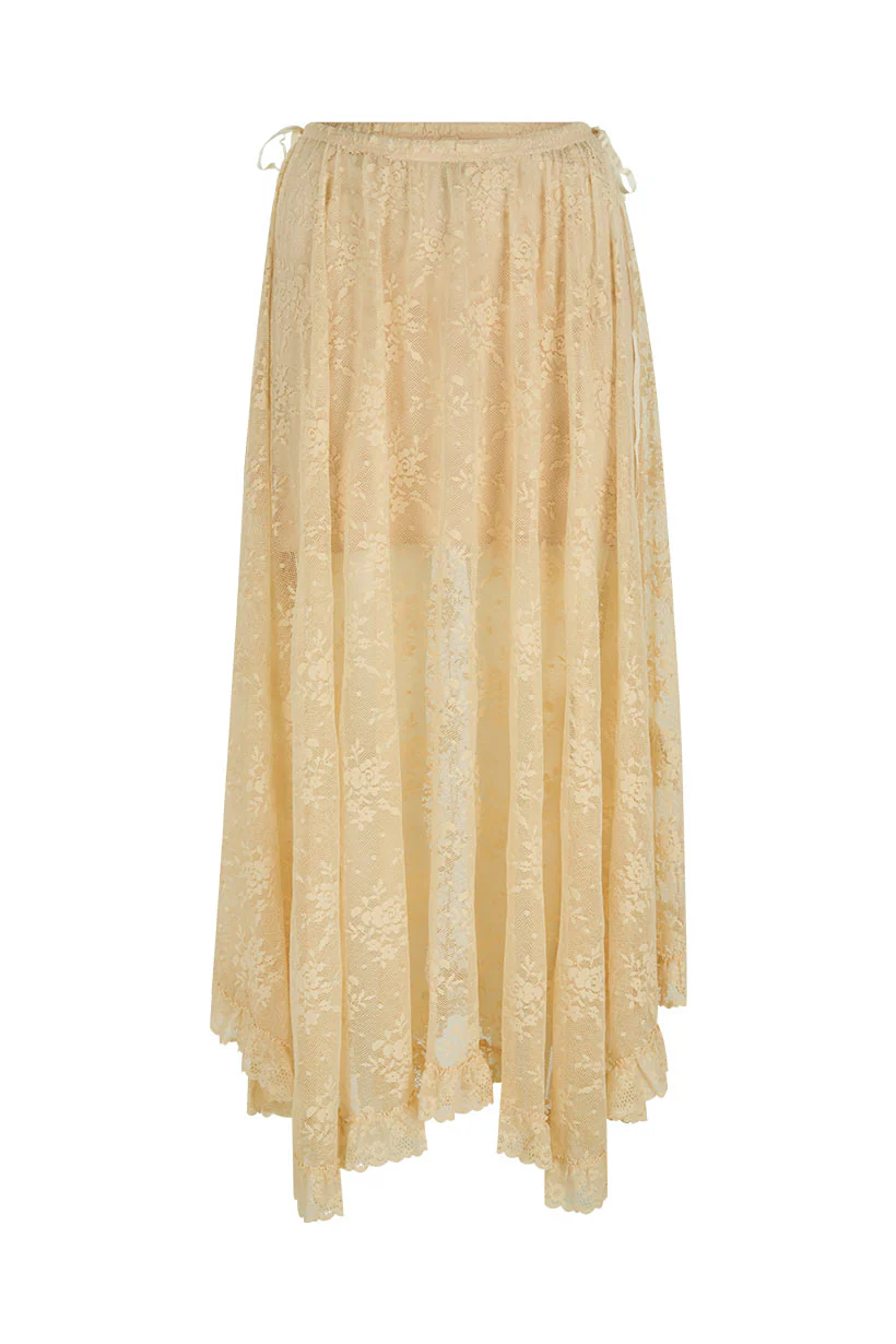The Labyrinth Lace Maxi Skirt in Peach Bliss is an effortless statement piece that is ethereal and beautiful. Crafted from 90% recycled polyamide with a touch of elastane, this maxi flows with graceful movement while the delicate lace hem trim adds intricate detail. The elastic waist and adjustable side tie offer flattering versatility, whether worn at the waist or hips, while the hi-lo hem creates a playful, dynamic silhouette. Slip lining ensures comfort and confidence with every step.