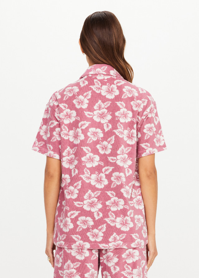 - Organic cotton terry jacquard in our pink and cream Lahaina hibiscus