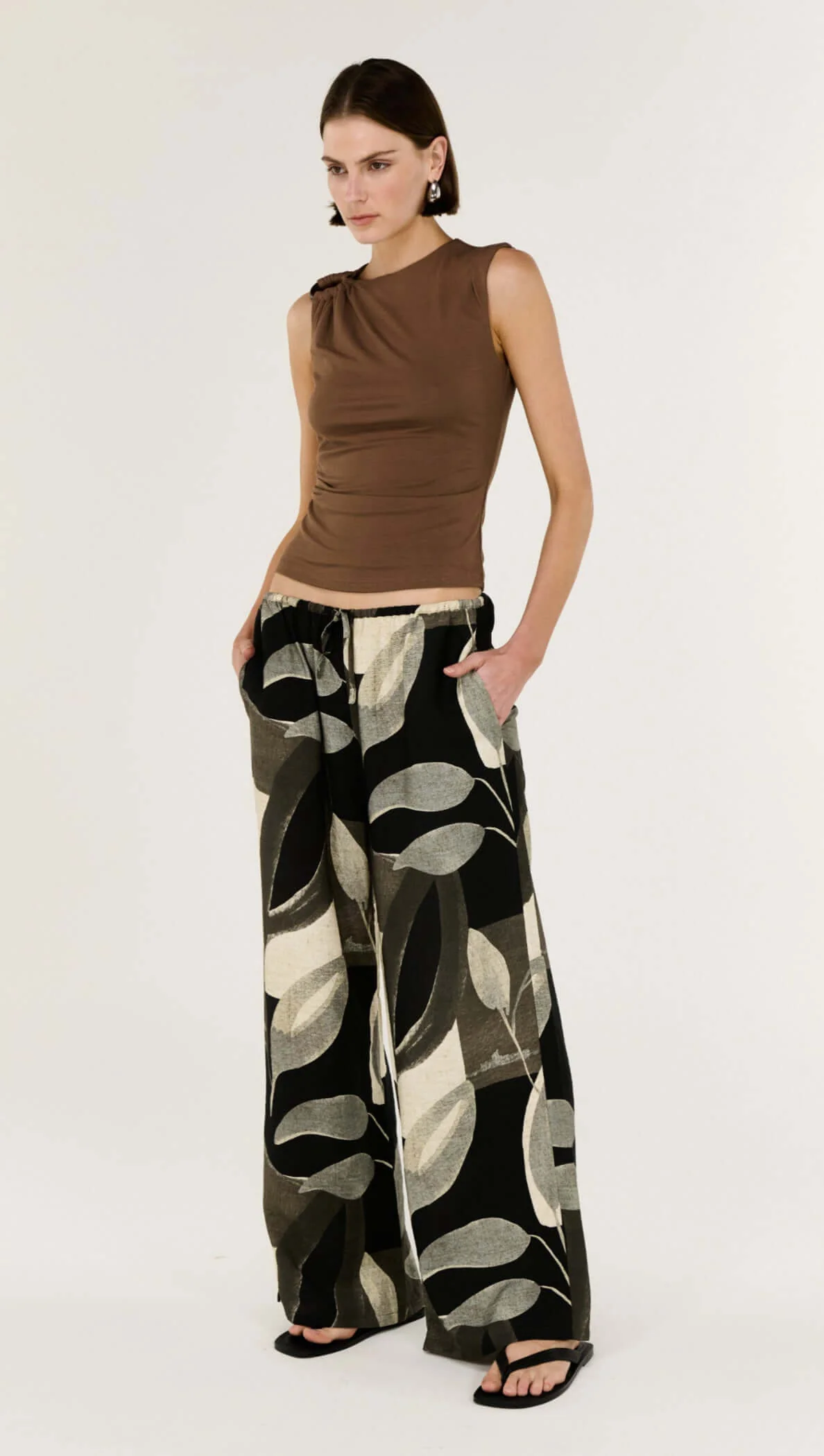 The Leona Dark Leaf Relaxed Wide Leg Pant brings effortless movement and statement appeal to everyday dressing. Designed in a flowing silhouette, this pant features a relaxed fit through the leg for comfort and ease.