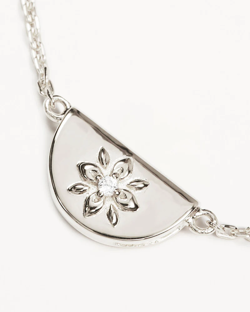 Introducing the Sterling Silver Lotus Bracelet, a delicate reinterpretation of the iconic Lotus Necklace. This cherished piece is inspired by the transformative journey of the lotus flower, serving as a poignant reminder that navigating challenges with resilience and compassion enables us to bloom into our serene and radiant selves.