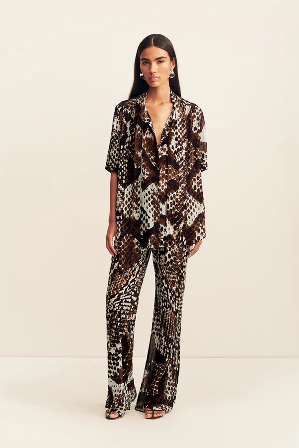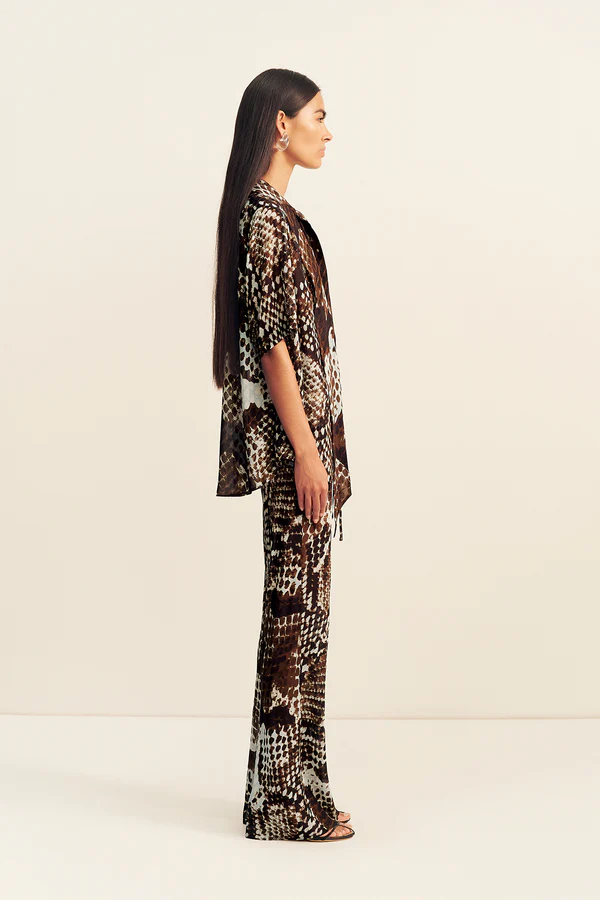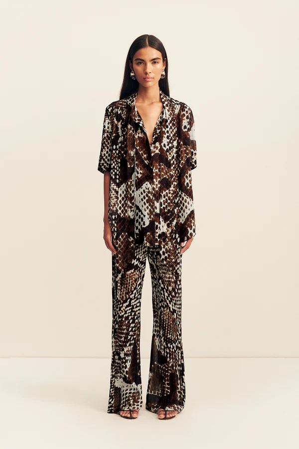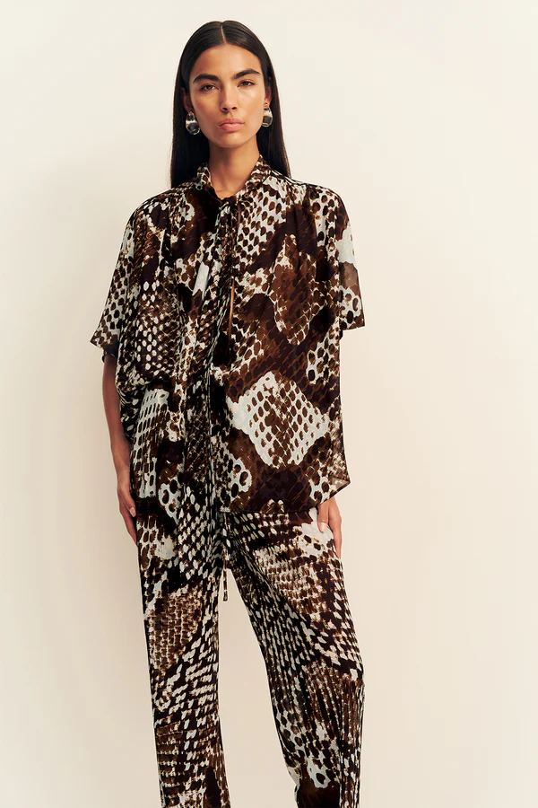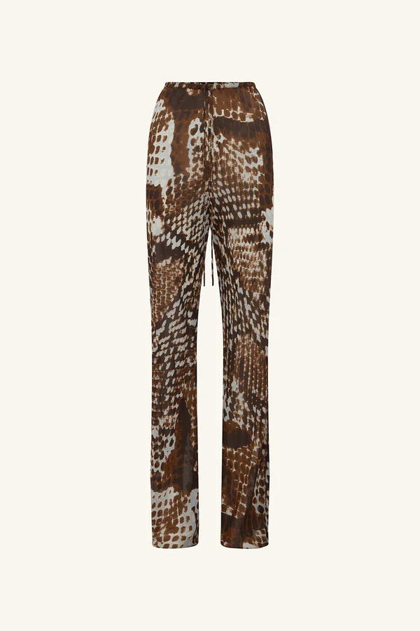 Sheer drawstring pant in the maia snake print in a semi-sheer georgette.