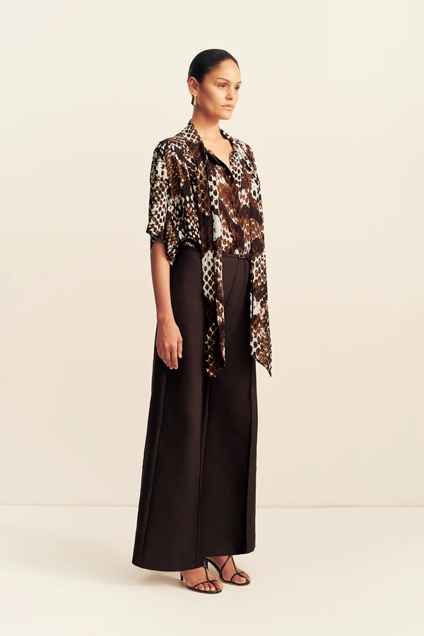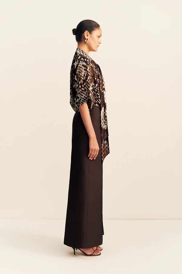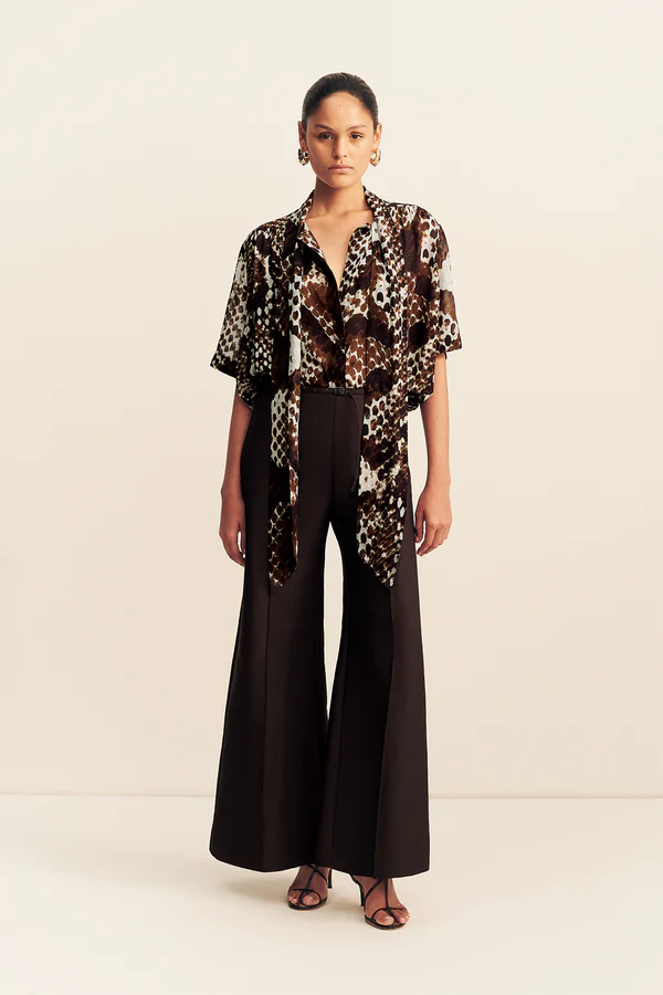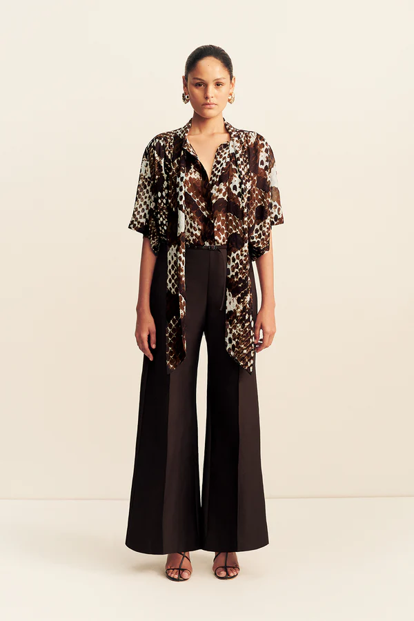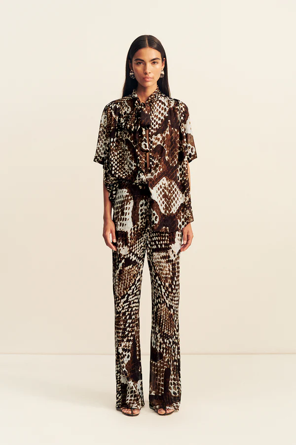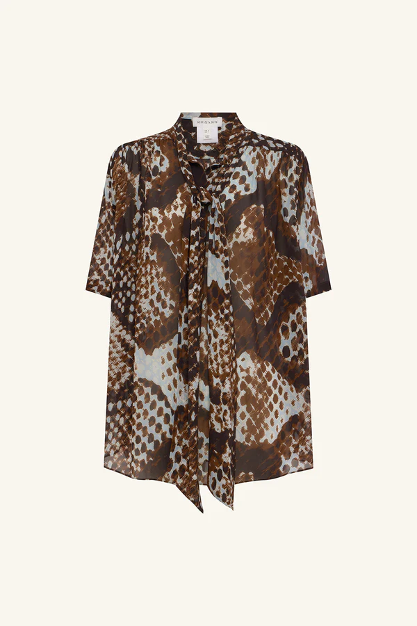 Short sleeve scarf shirt in the maia snake print in a semi-sheer georgette.
