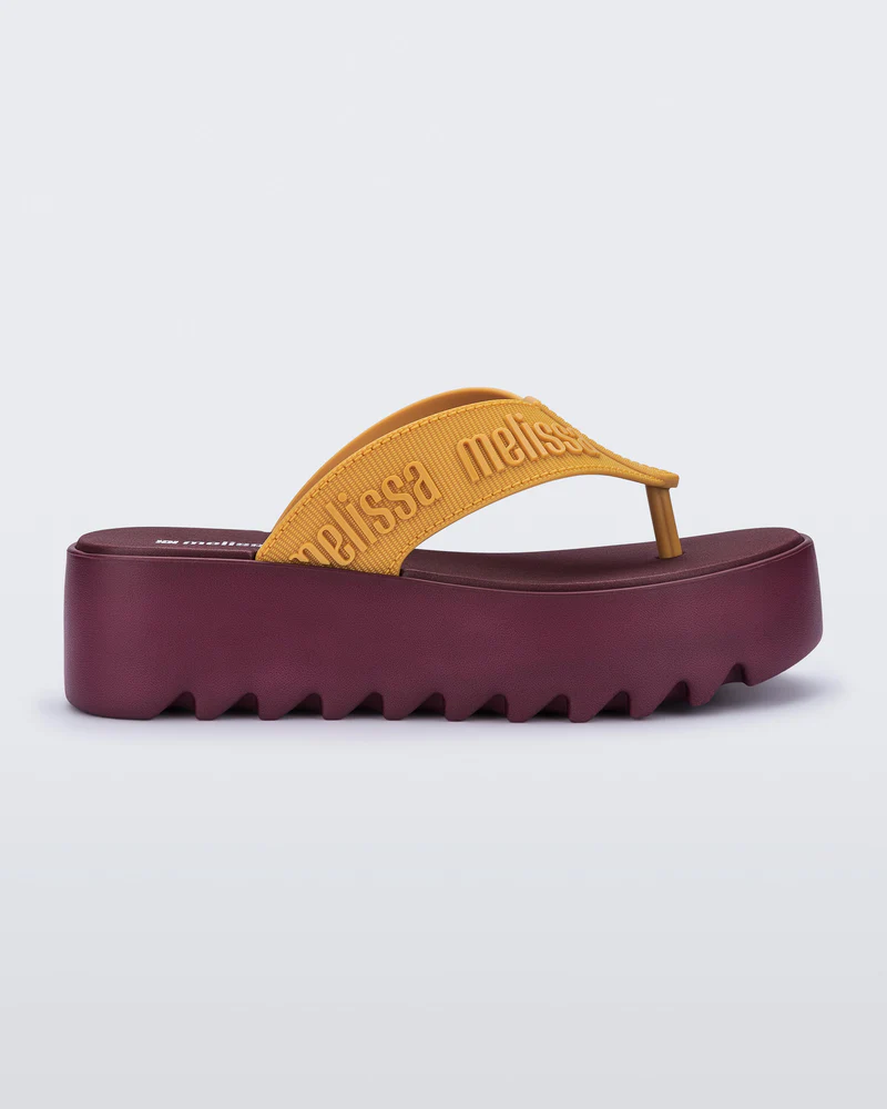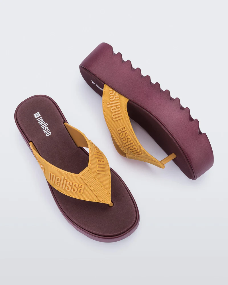 The Melissa M-Lover Thong Platform blends the bold feel of a clog with the laid-back ease of a flip-flop, creating a silhouette that’s modern, lightweight and full of personality. It’s statement-making — but in the most wearable way. Crafted from Melflex®, Melissa’s flexible and 100% recyclable material, it feels soft underfoot while holding its shape beautifully. A gently treaded sole and cushioned insole keep every step steady, while wide straps embossed with the Melissa name add a confident, graphic touch. You get the lift of a platform, without sacrificing comfort or stability.