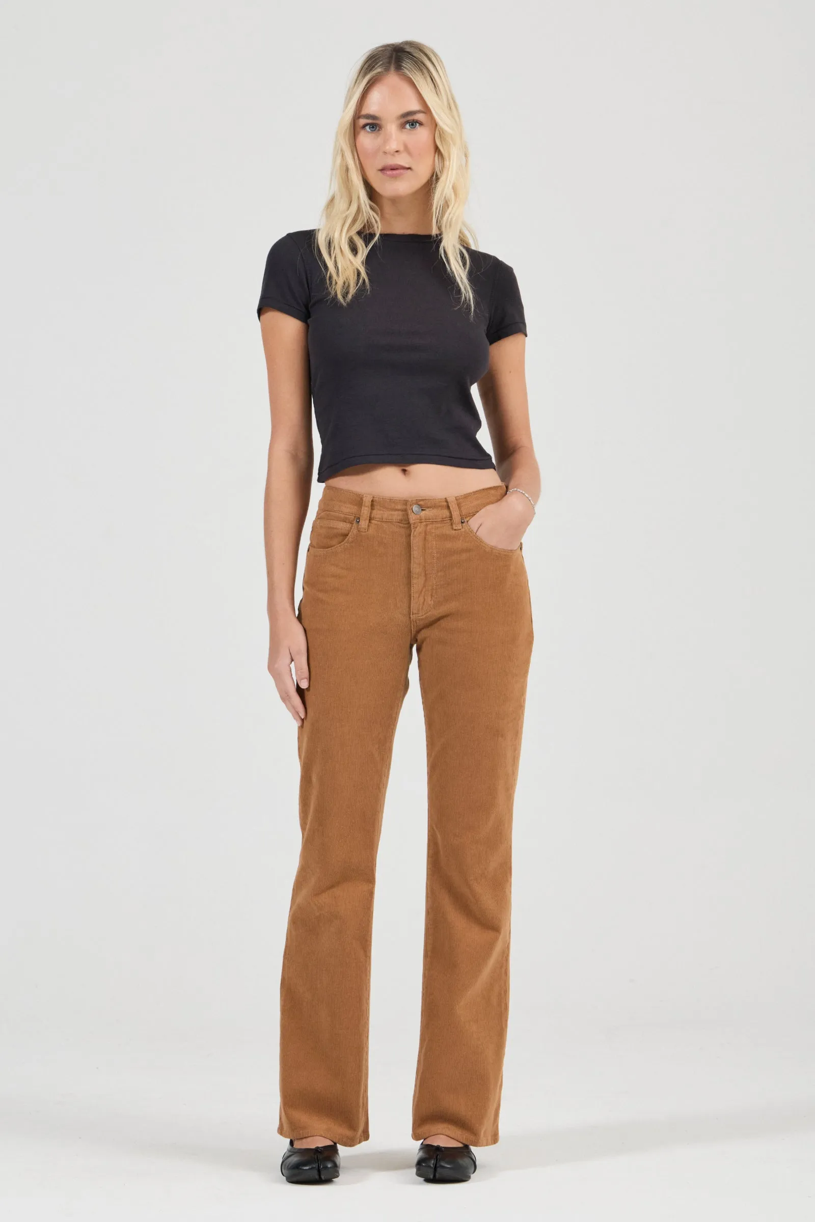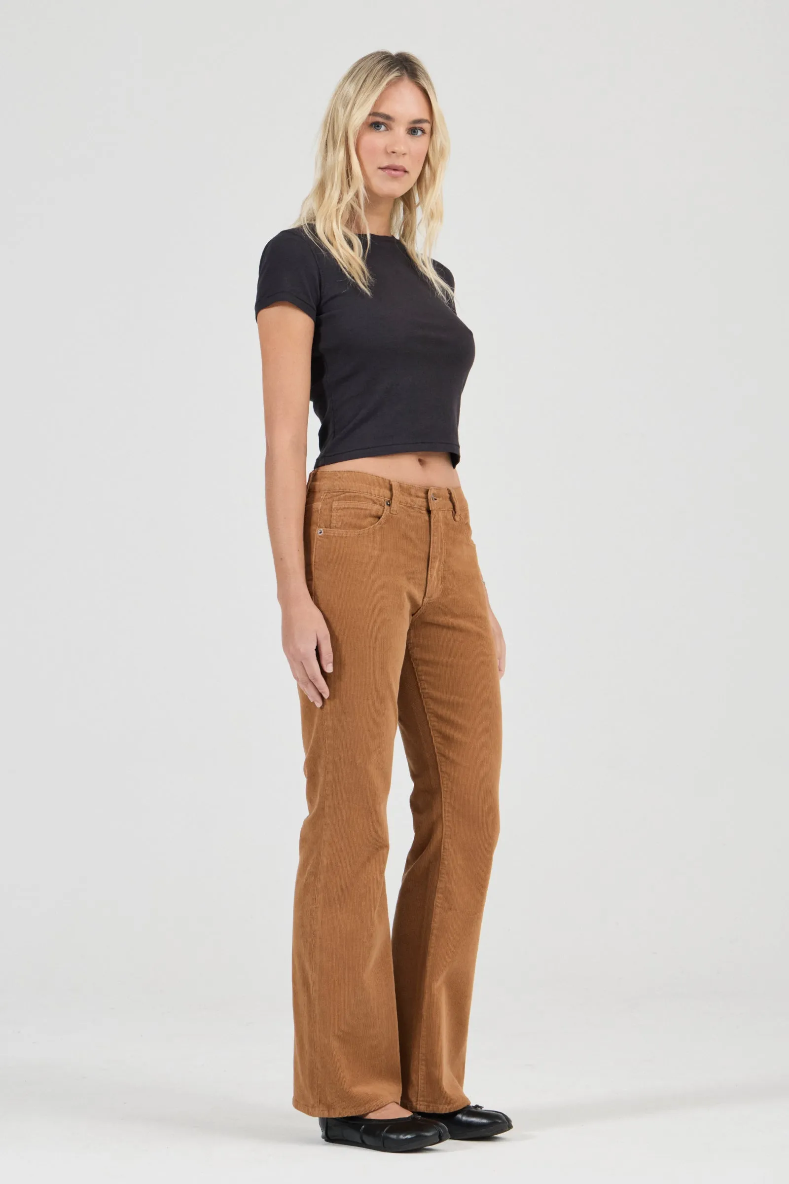 Midtown Boot is a mid-rise jean with a boot leg, made with a premium stretch corduroy.