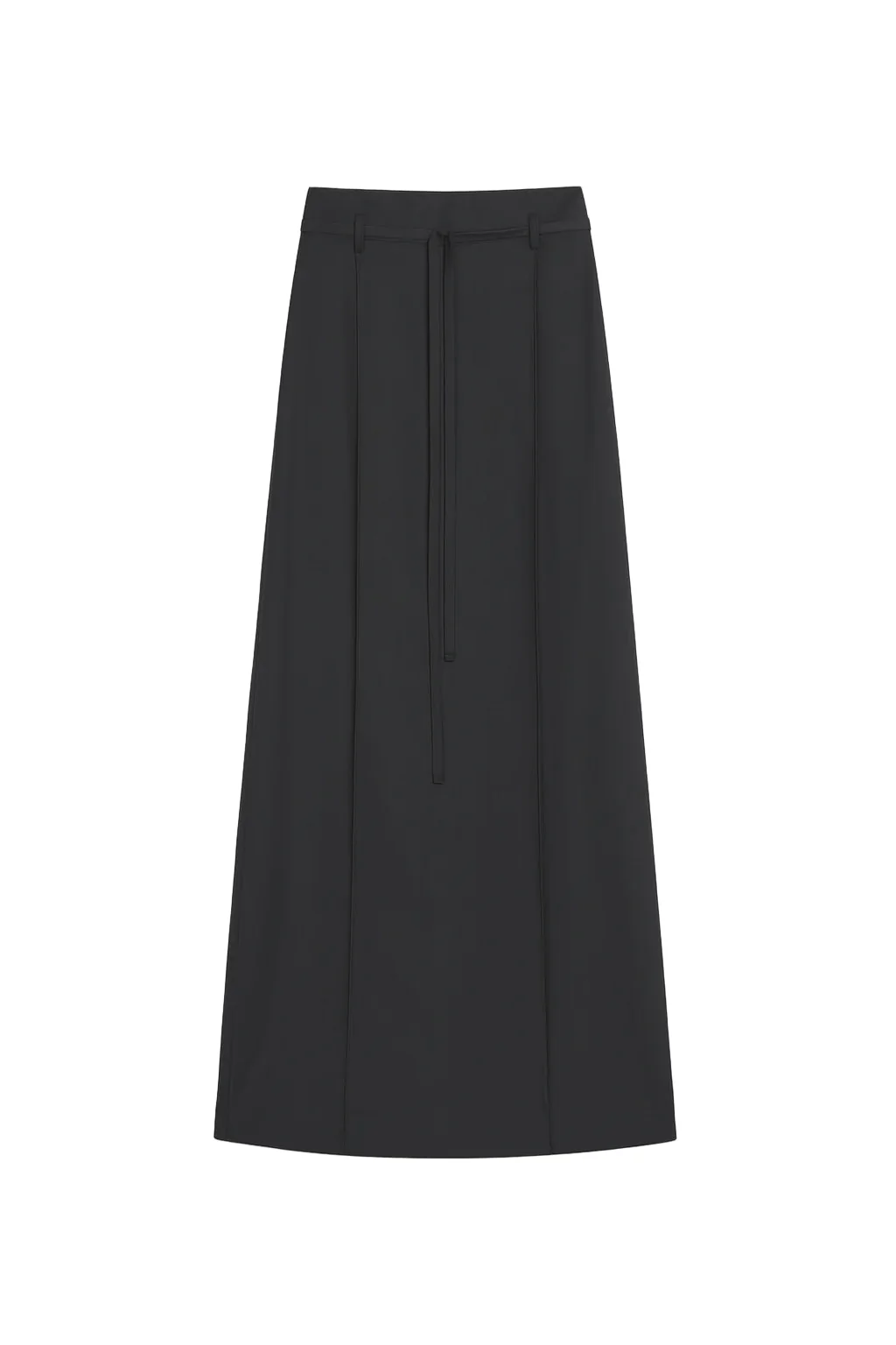 Camilla and Marc Milo Skirt in Black. CAMILLA AND MARC Milo black fisherman maxi skirt with belt loops and tie. Pleated waistband, inseam pockets and concealed zip closure at centre back.