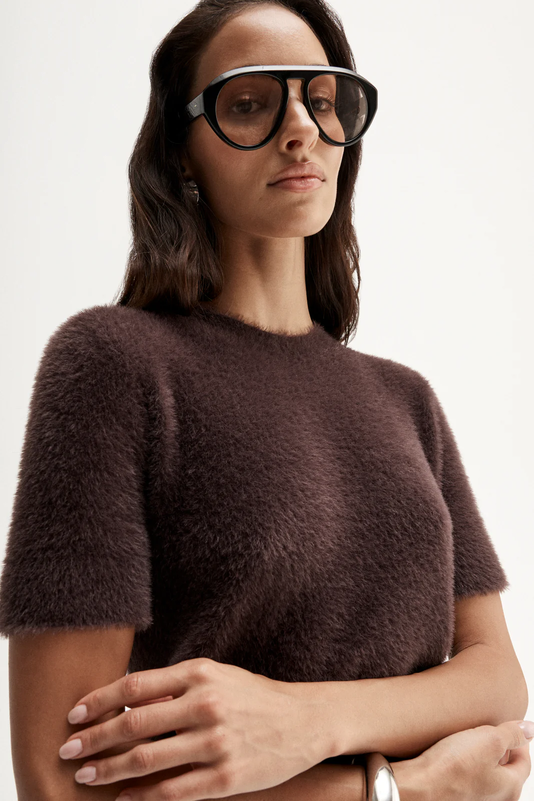 In the best-selling, soft and fuzzy knit fabric, the Mochi Knit Tee is a refined essential for cooler days. Effortlessly style with denim for understated ease, or pair with tailored pants for a more polished look.