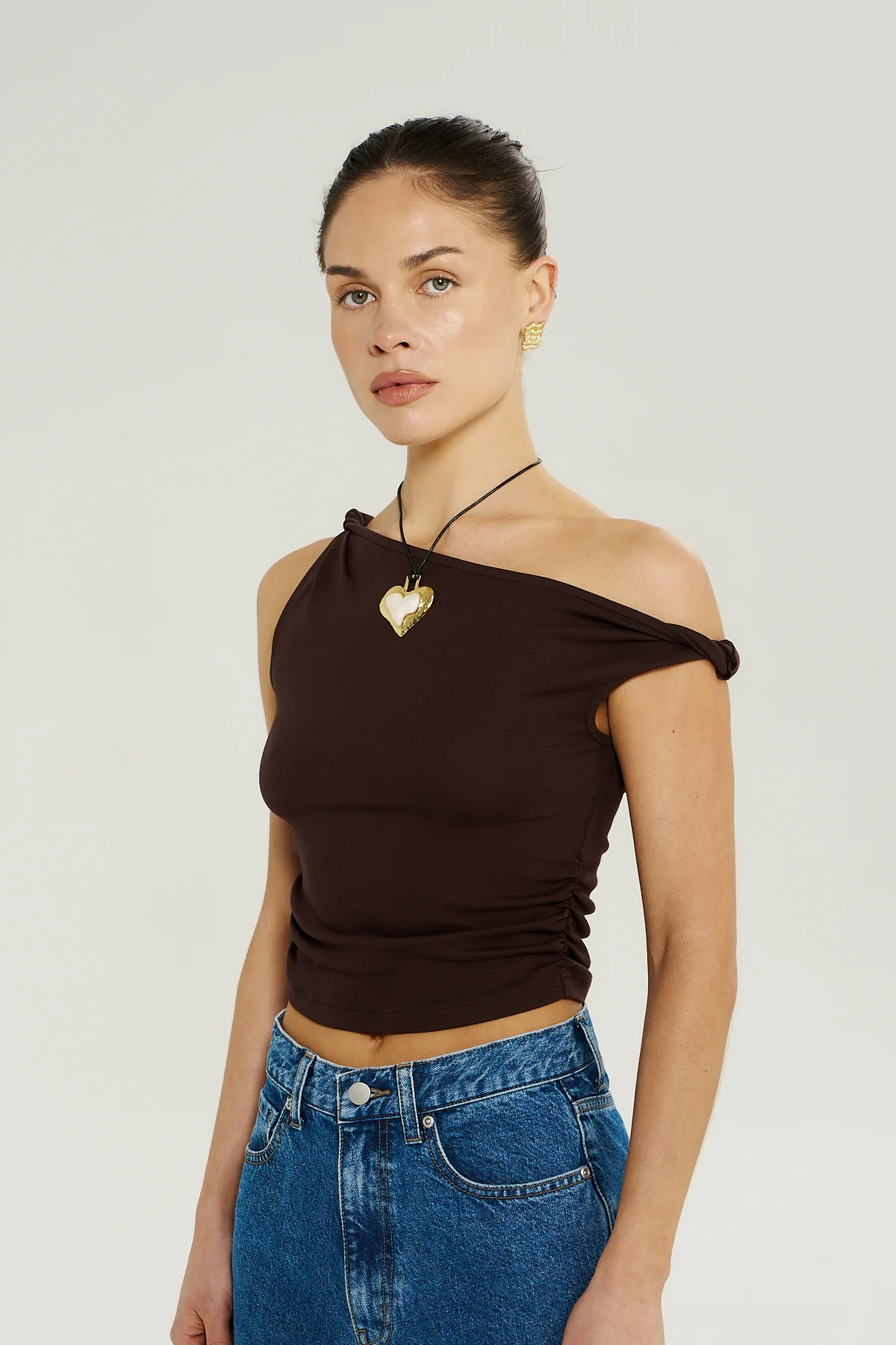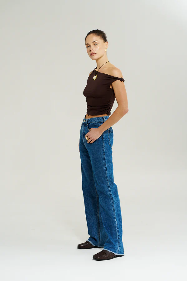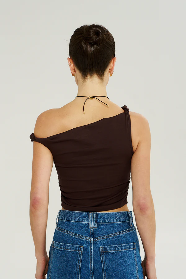 This Off Shoulder Twist Top adds a contemporary edge with its sculptural neckline and flattering fit. The Chocolat tone keeps it refined while the silhouette feels bold. Perfect for date nights, evening events, or stylish dinners.