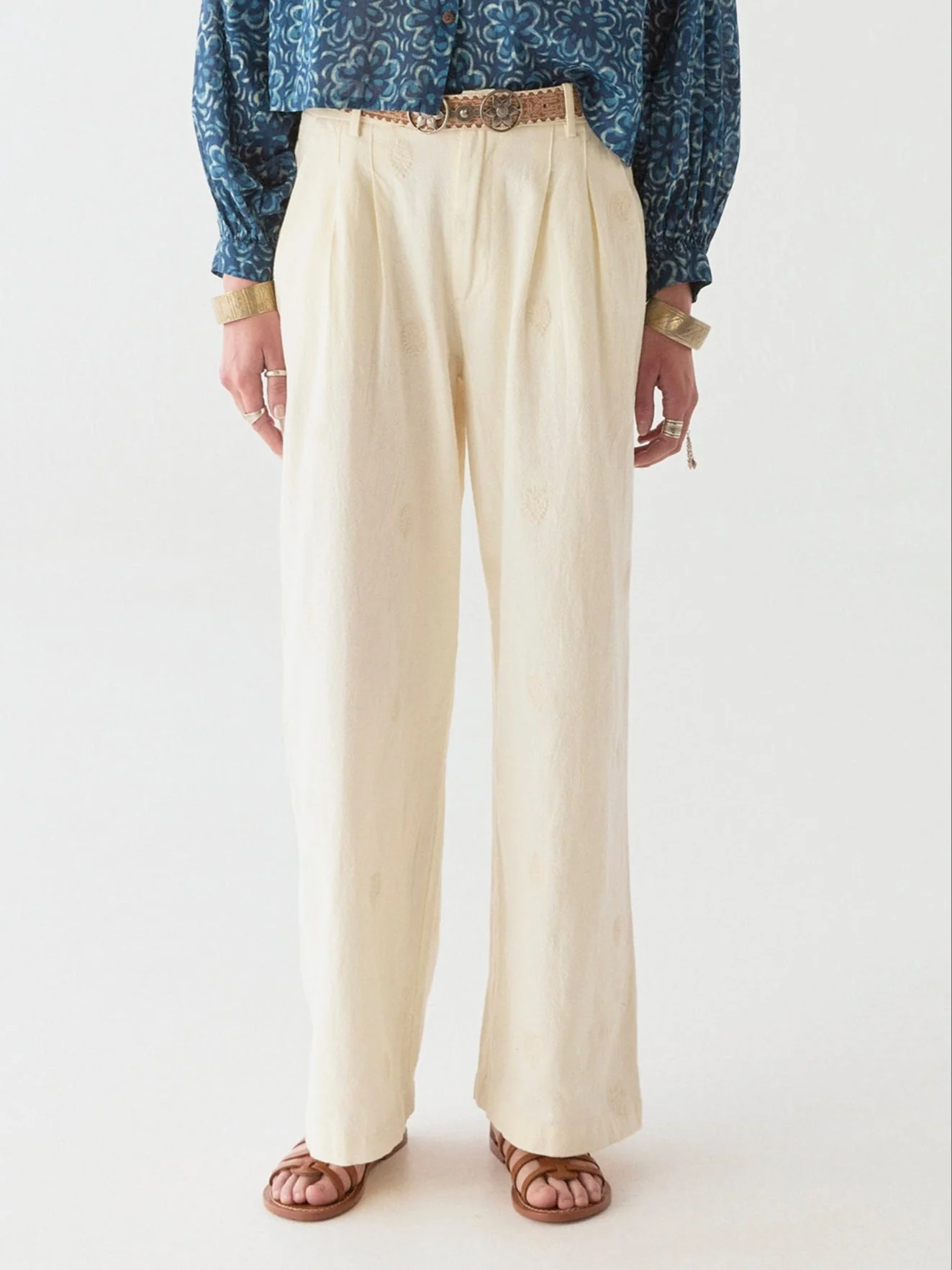Cut from 100% cotton, featherlight but never flimsy. Tonal embroidery weaves across the fabric, subtle yet deliberate—there for those who notice. Loose where it counts, fitted where it matters. A waistline that knows what it’s doing, a drape that moves like it’s got places to be.
