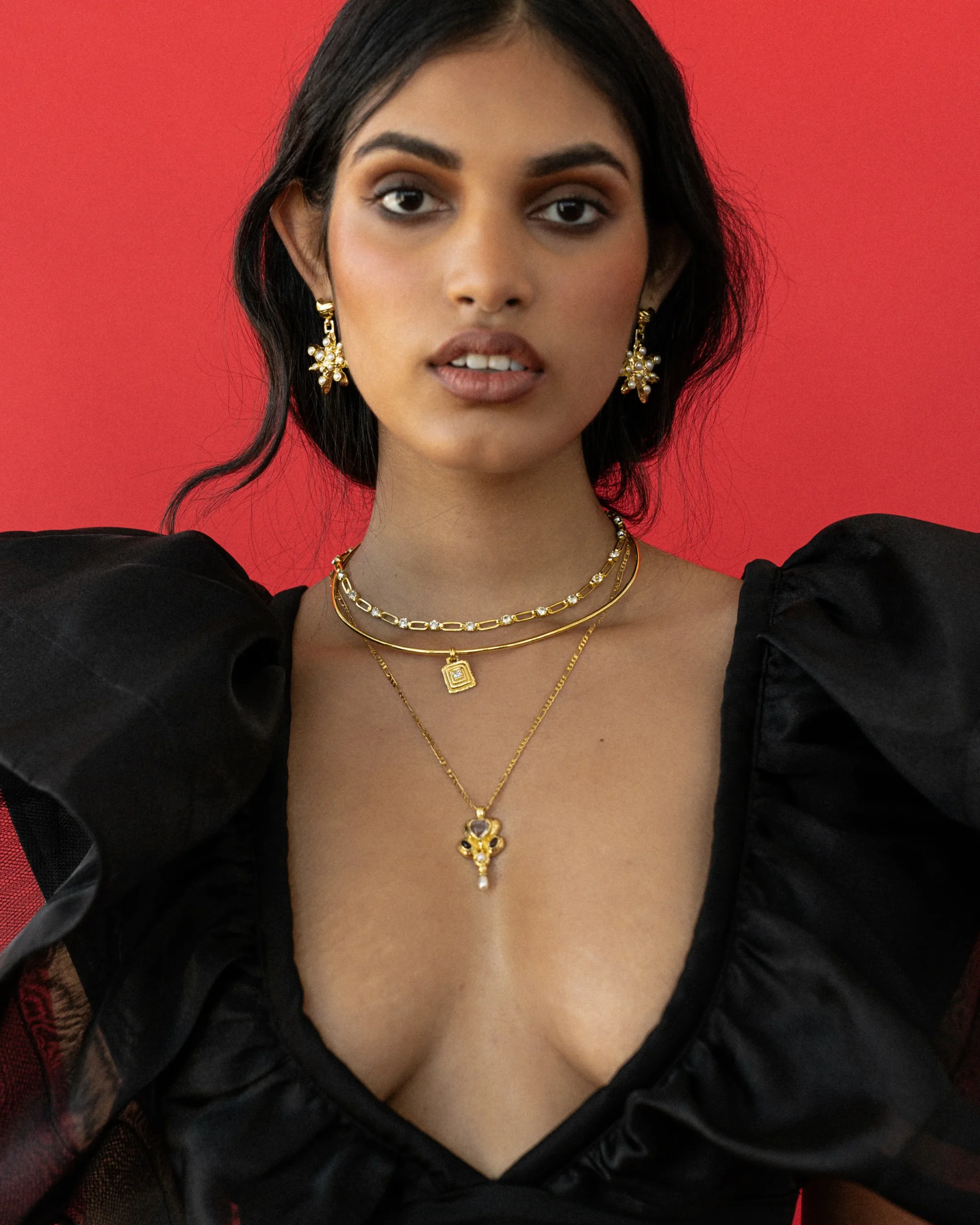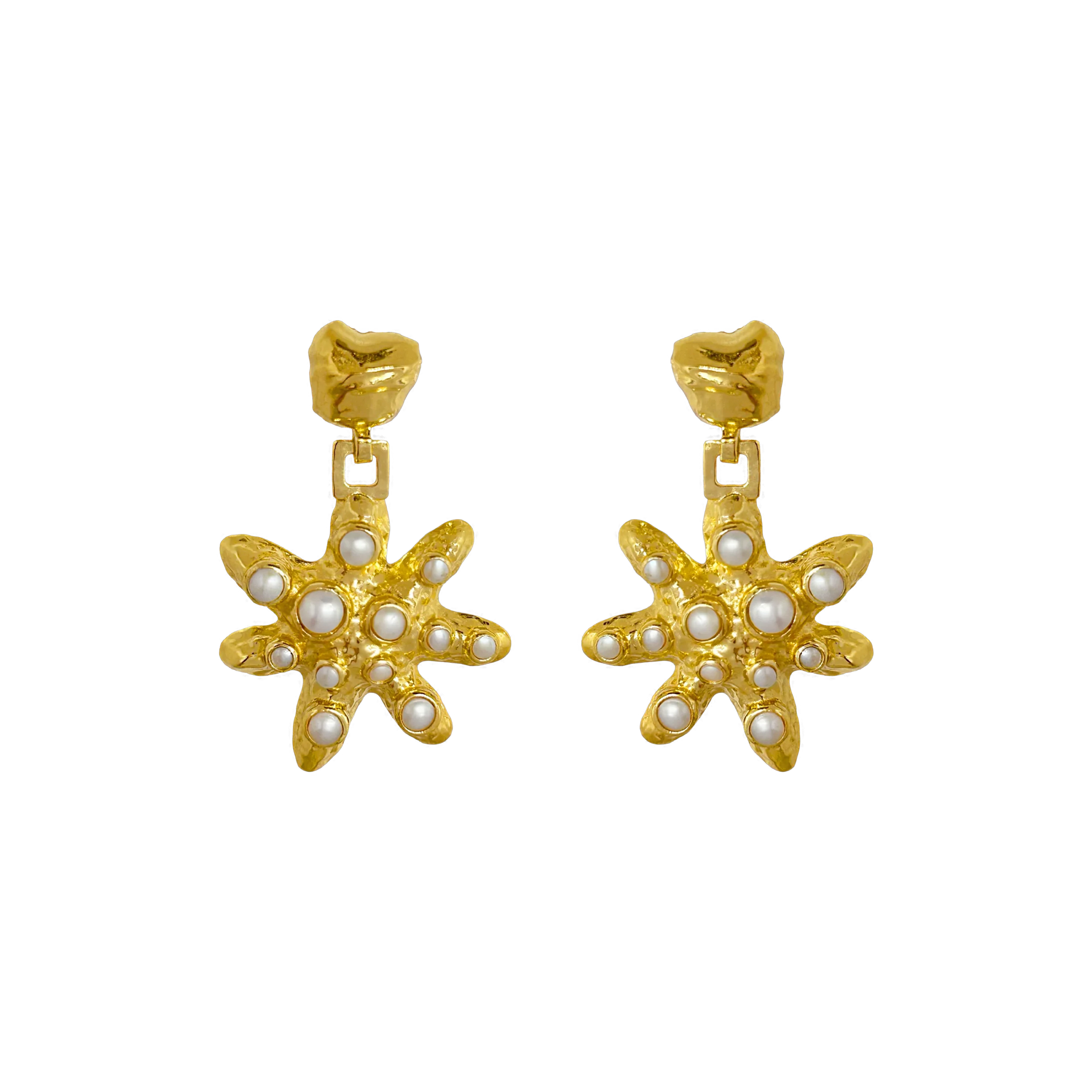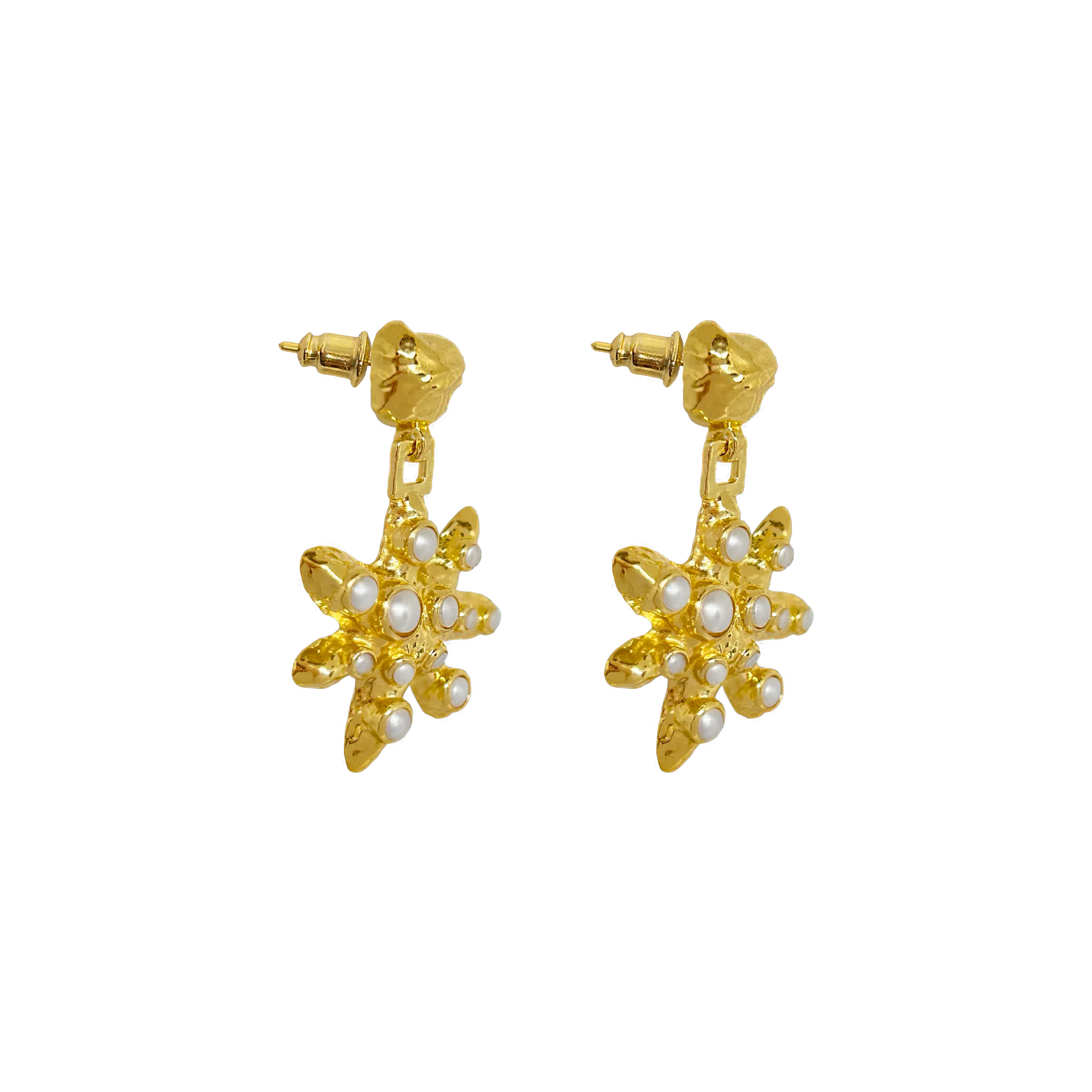 Rooted in artisanal tradition, the Pari Earrings reimagine one of the best-selling star motifs with new depth and decadence. Handcrafted using signature MM techniques, the design features a hammered texture contrasted by a high-polish finish — a celebration of detail and duality. Encrusted with luminous freshwater pearls, each piece brings a sculptural elegance to the everyday, making it a standout for the modern woman who treasures craftsmanship with a twist.