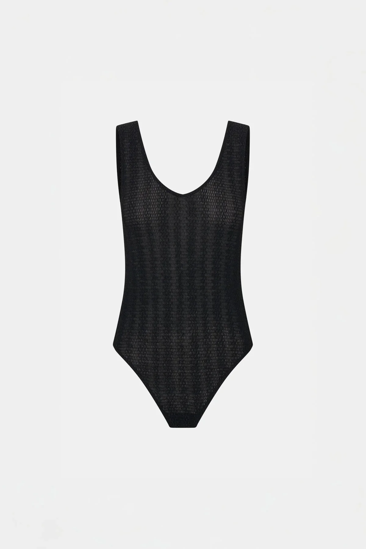 Introducing the Camilla and Marc Pieta Bodysuit in Black — a semi-sheer lace scoop bodysuit lined with lightweight jersey for comfort and subtle coverage. Designed with an elastic leg opening and secure snap button closure, this piece offers a sleek, refined base for layering.