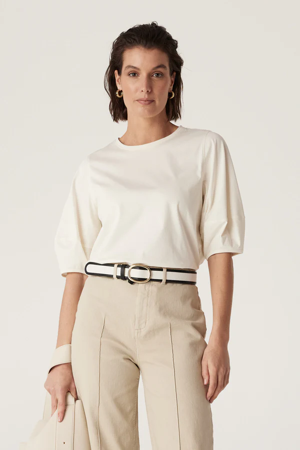 Pima Lantern Sleeve Top | Cream