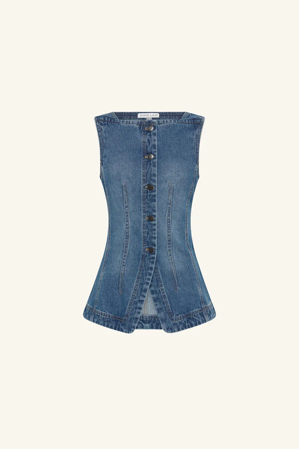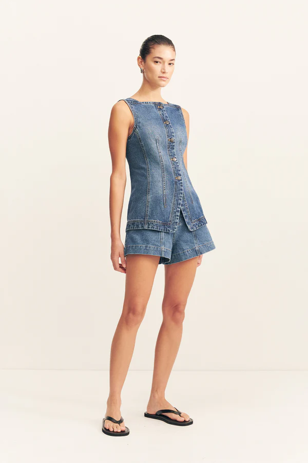 High square neck vest in a washed indigo denim.
