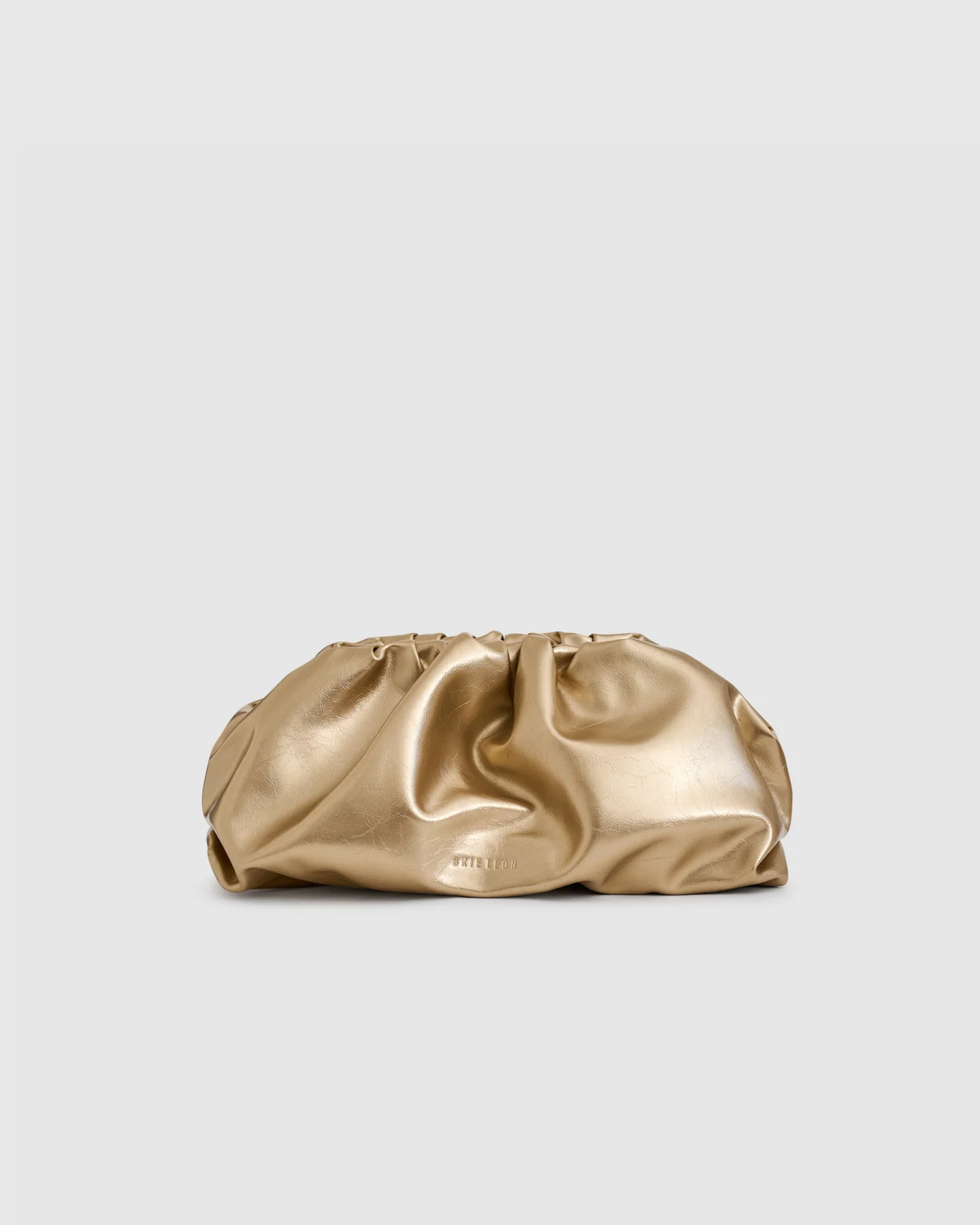 A relaxed yet refined silhouette, the Rhi Clutch is designed for effortless styling and versatility. Crafted from Recycled Polyurethane with a subtle gold sheen, this timeless clutch combines structure and softness through its gathered shape and minimal design.