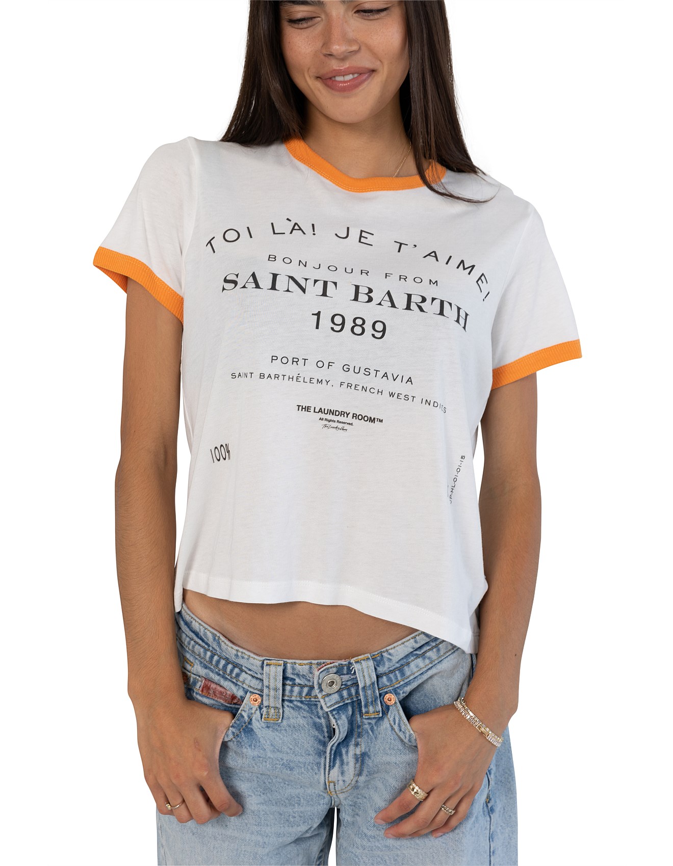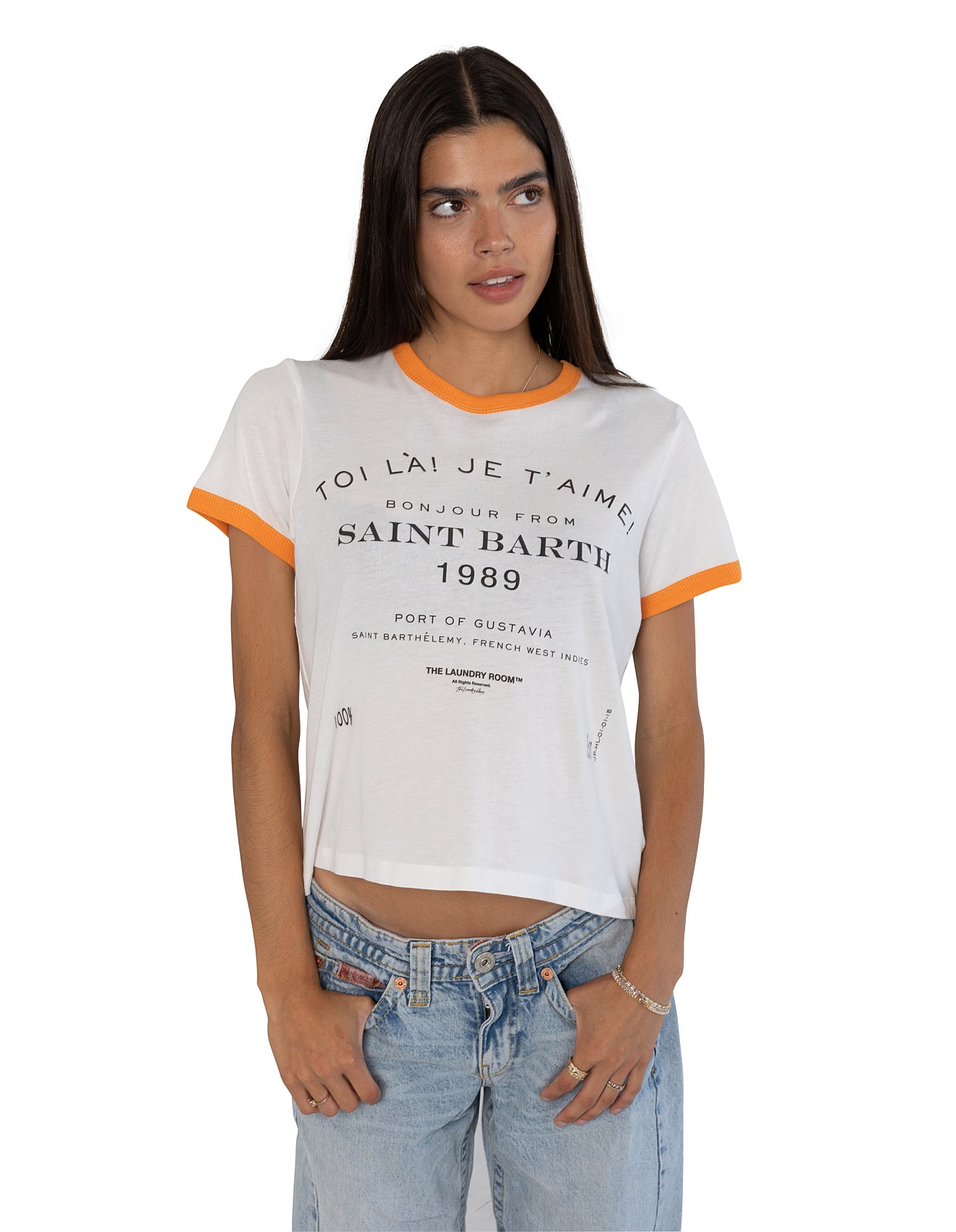 Saint Barth Ringer Tee | White/Orange