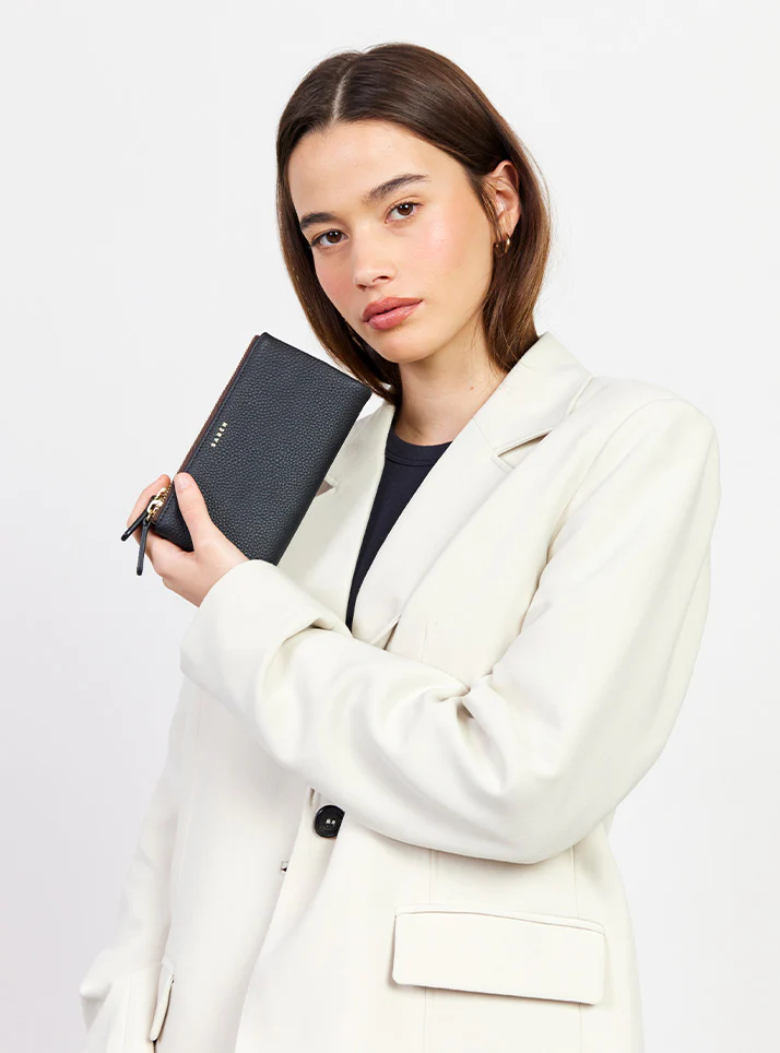 A beautifully soft leather wallet with pockets a plenty for your cards, coin and cash. She is your perfect partner from desk to dinner.