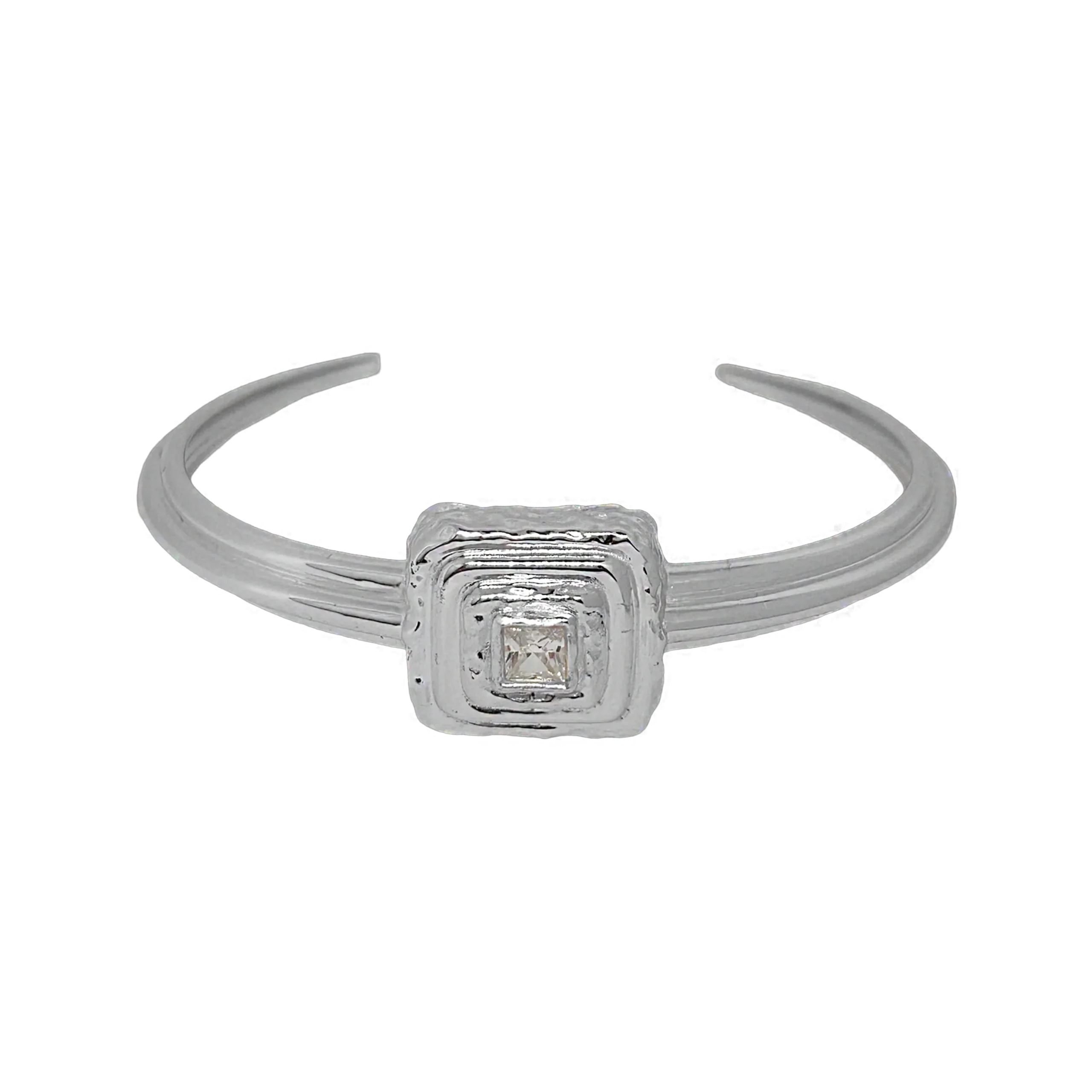 A bold expression of heritage and form, the Samira Cuff fuses architectural lines with artisanal warmth. Handcrafted by master artisans, its radiant silver finish encircles a sparkling CZ gemstone, framed in sculptural tiers that echo timeless traditions. Designed for the modern woman who moves with purpose and grace, this piece balances strength and elegance in every curve. Wear it solo as a statement or layered — a tribute to heritage, reimagined for today.