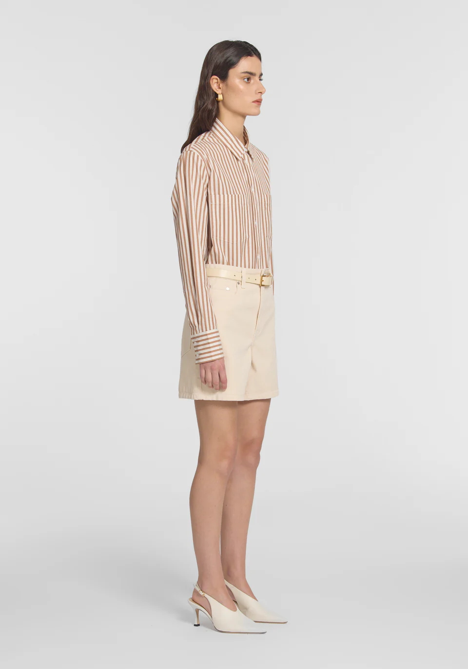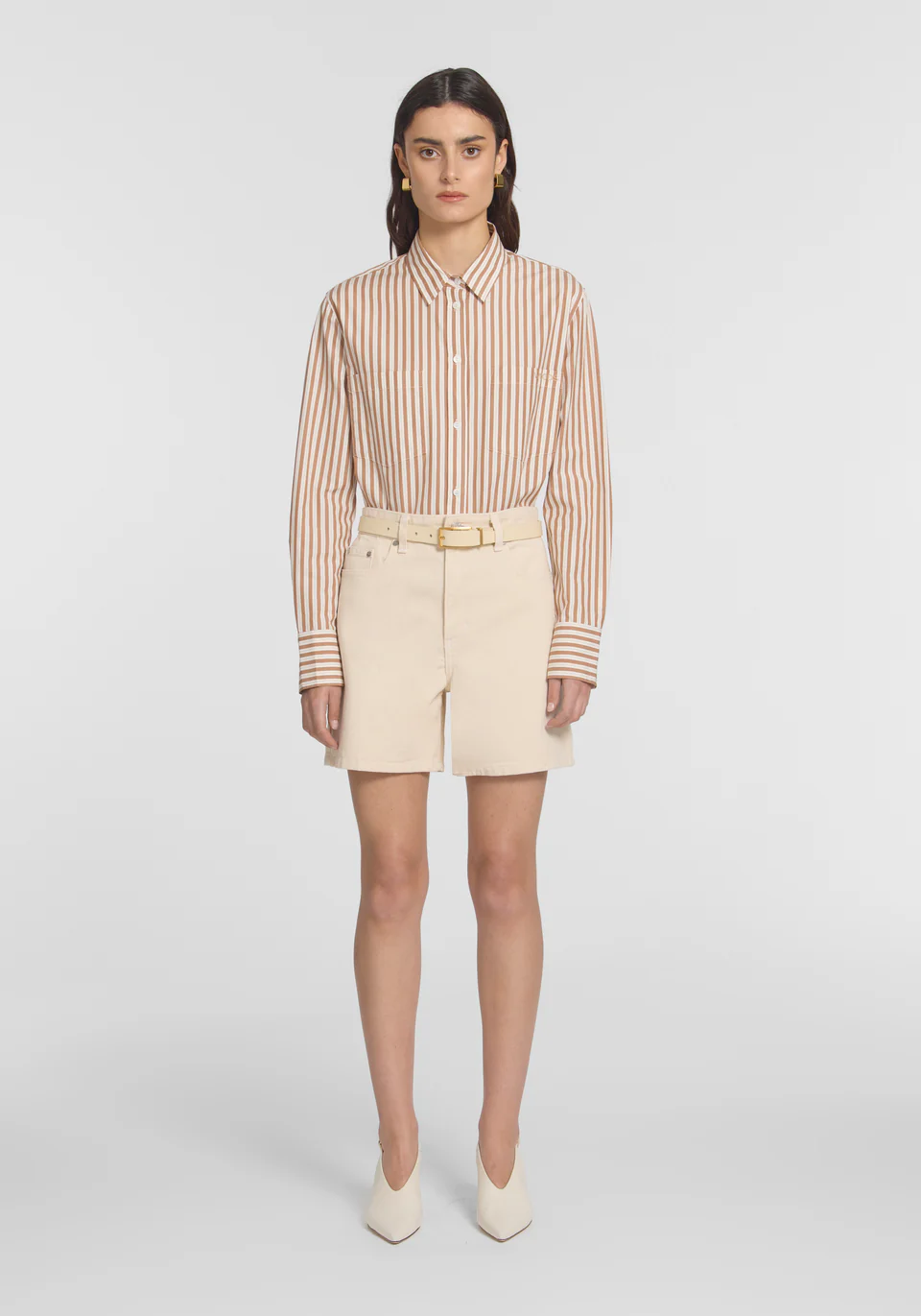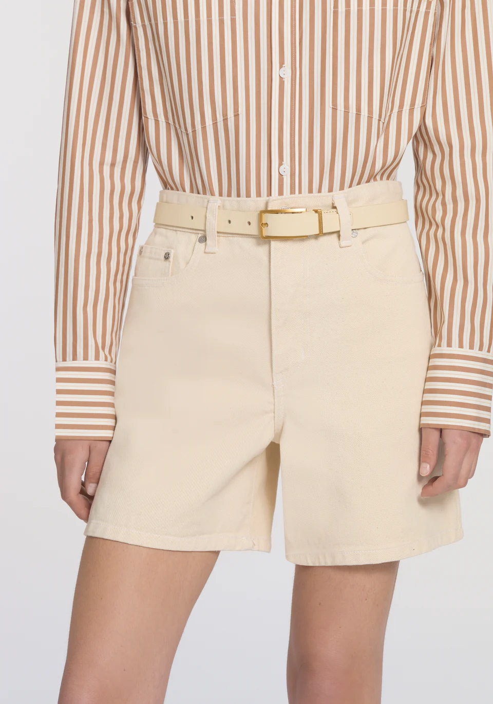 The Stingray Short returns in a fresh sea salt white wash, offering a chic alternative to the classic blue denim short. An effortless staple, it’s designed with a flattering high rise and a relaxed fit that falls to the mid-thigh, finished with signature accents – a tan logo leather patch and logo hardware.