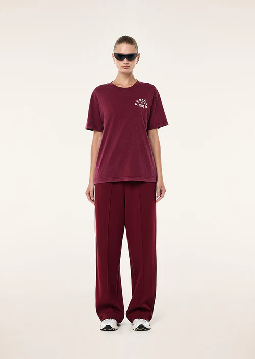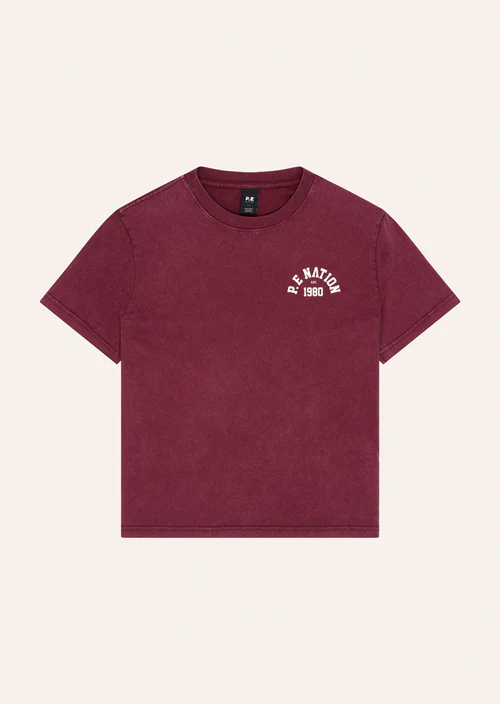 The Swerve Tee in Washed Cabernet is crafted from premium cotton with a softly structured feel designed to wear on repeat. Built for Pilates, light training and laid-back days, it’s an easy grab-and-go layer. Designed in a relaxed short sleeve silhouette with a ribbed crew neckline, it’s finished with a P.E Nation graphic and a vintage wash for lived-in edge.