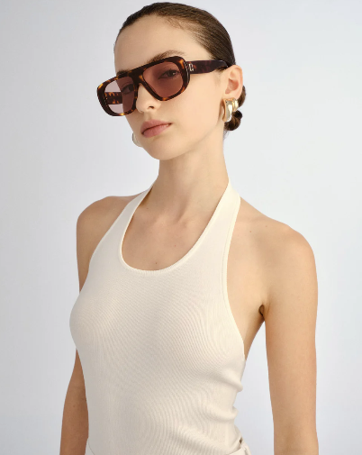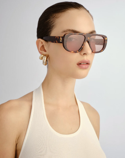 An icon of effortless confidence. The Dionne elevates the oversized aviator with clean lines and a refined proportion. Handmade from premium acetate, the design is finished with bespoke organic L-square badge hardware at the temples, offering a signature touch of modern sophistication.