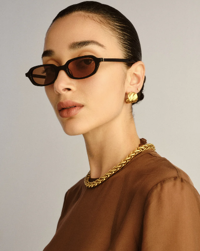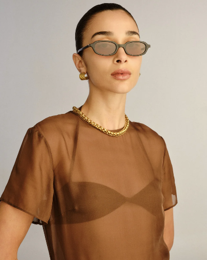 Delicately designed for quiet sophistication. The Mimi is a petite rectangle frame with softened edges, offering a subtle balance of structure and ease. Finished with super-fine temples and organic wave hardware in gold, it delivers a delicate signature touch.