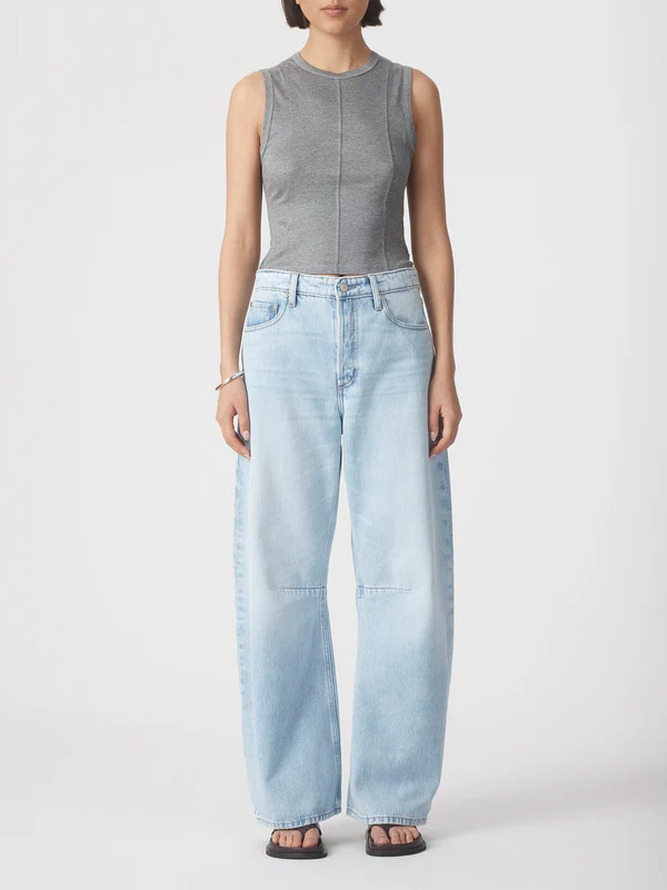 The Vera Jean sits just below the navel, is relaxed through the hip and leg, with a bow leg profile and finishes at the top of the shoe. Features a knee dart and button fly. Crafted from premium rigid denim.