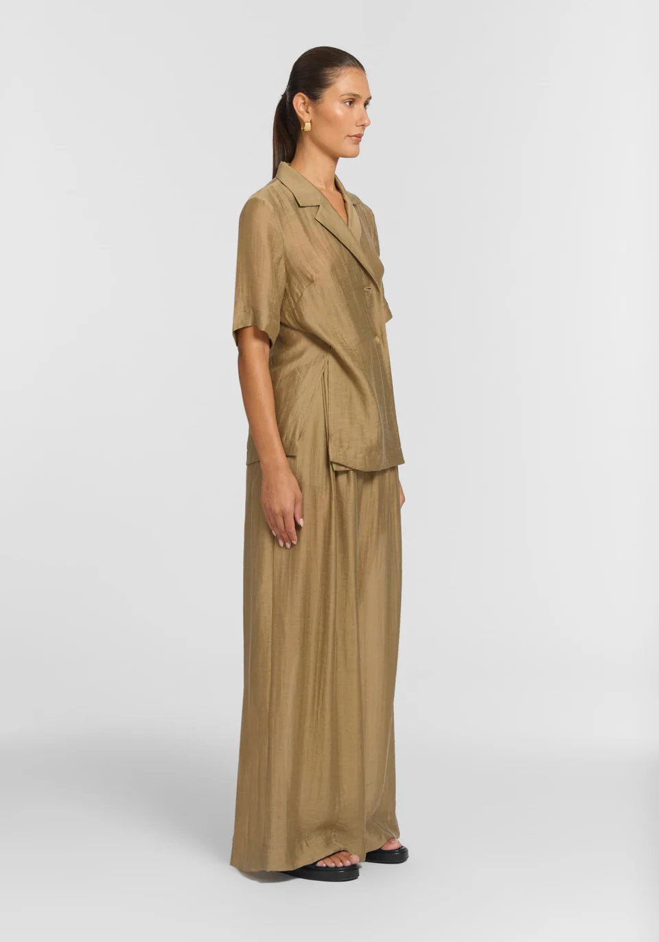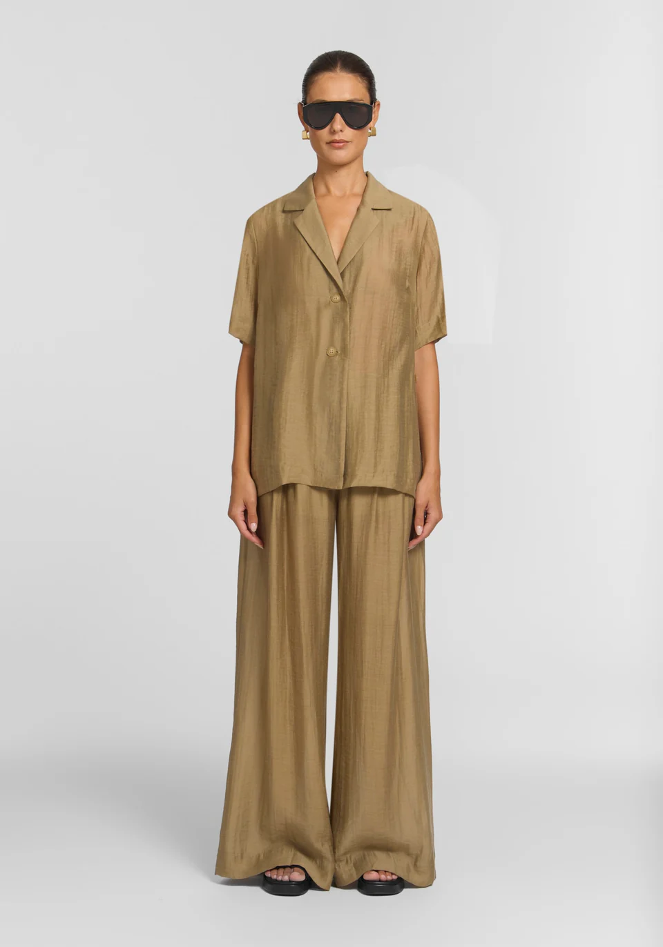 The Wolfhound Shirt, an elevated take on the classic shirt, exudes fluid, sophisticated ease in soft sage. Featuring a front wrap fastening, relaxed shoulders, a collar and lapel, and side-seam splits, it effortlessly carries you through summer events, the workday, and everything in between. Pair with the Irishman Pant for a summer set that speaks to the quiet power of form.